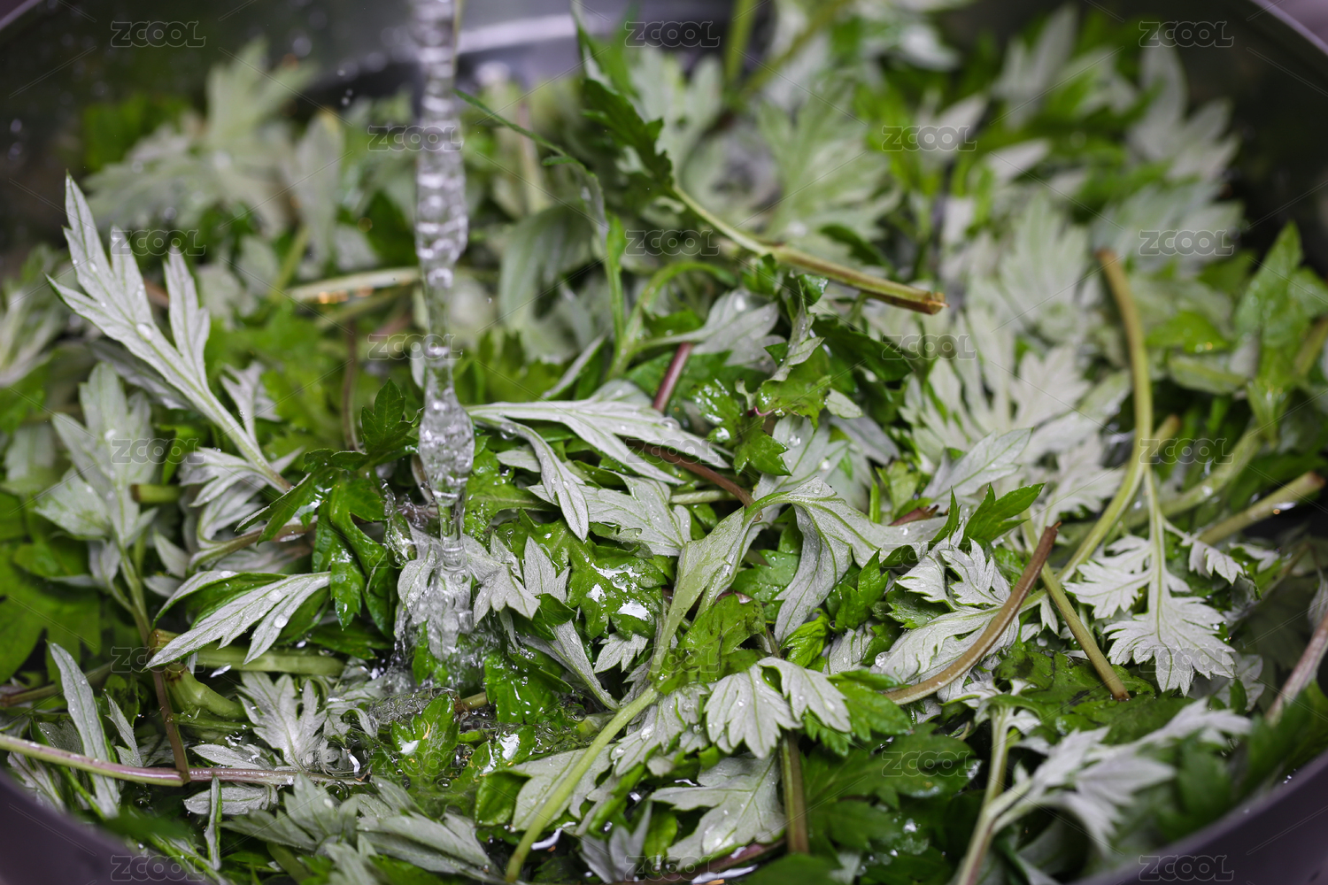 清洗新鮮的艾草