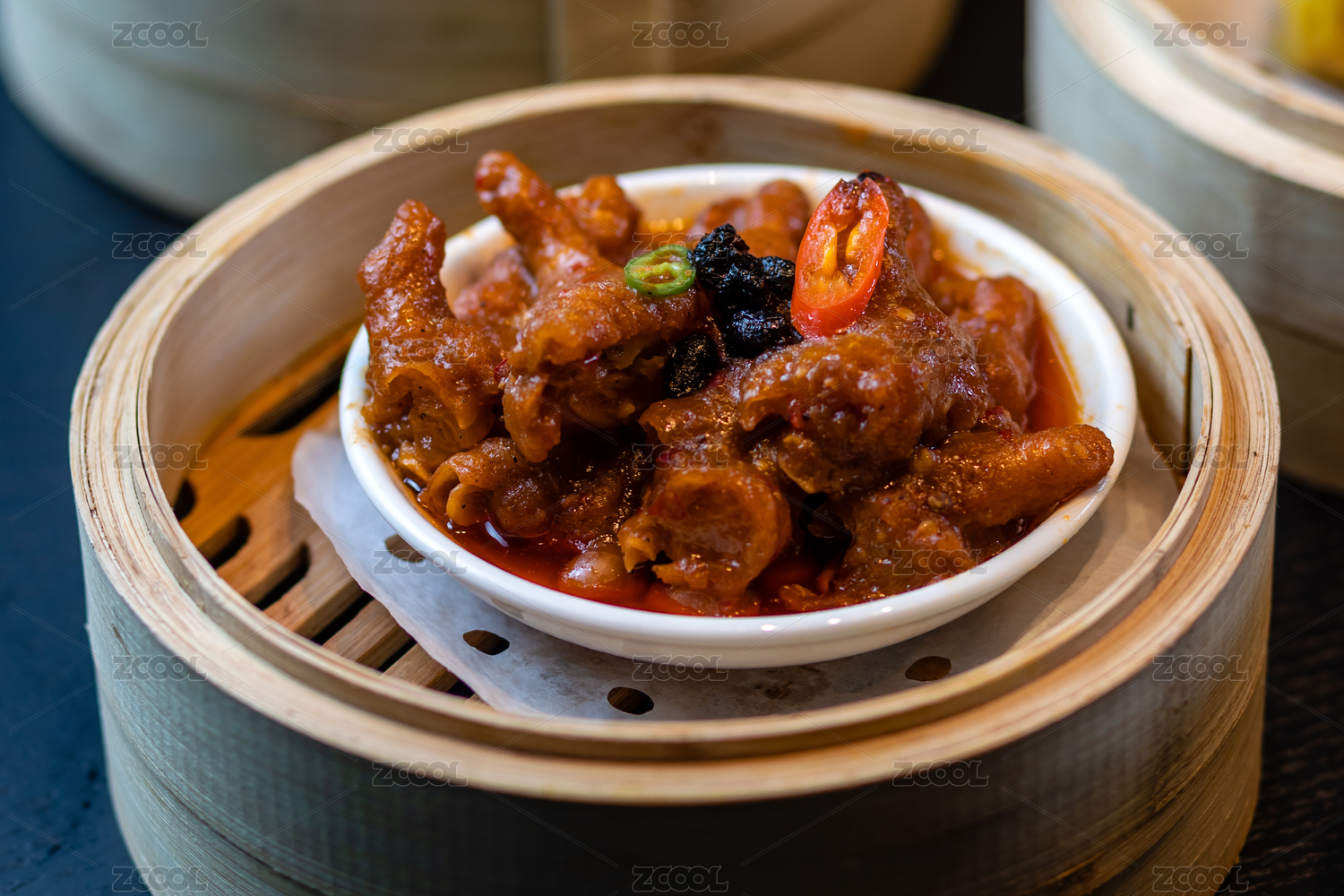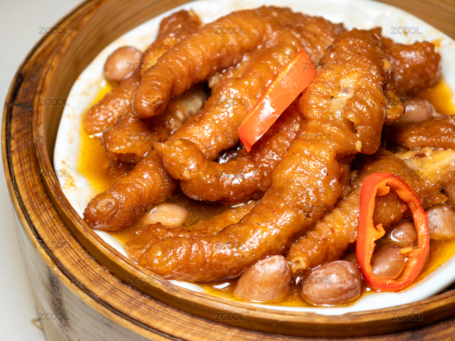 蒸籠里的傳統(tǒng)粵式點(diǎn)心花生蒸鳳爪