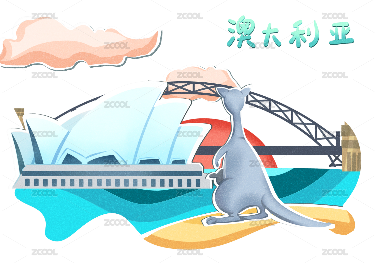 剪紙風(fēng)格澳大利亞悉尼歌劇院和袋鼠插畫