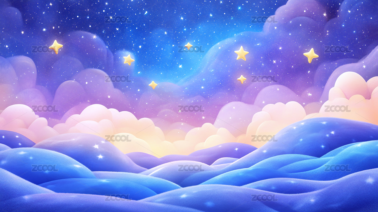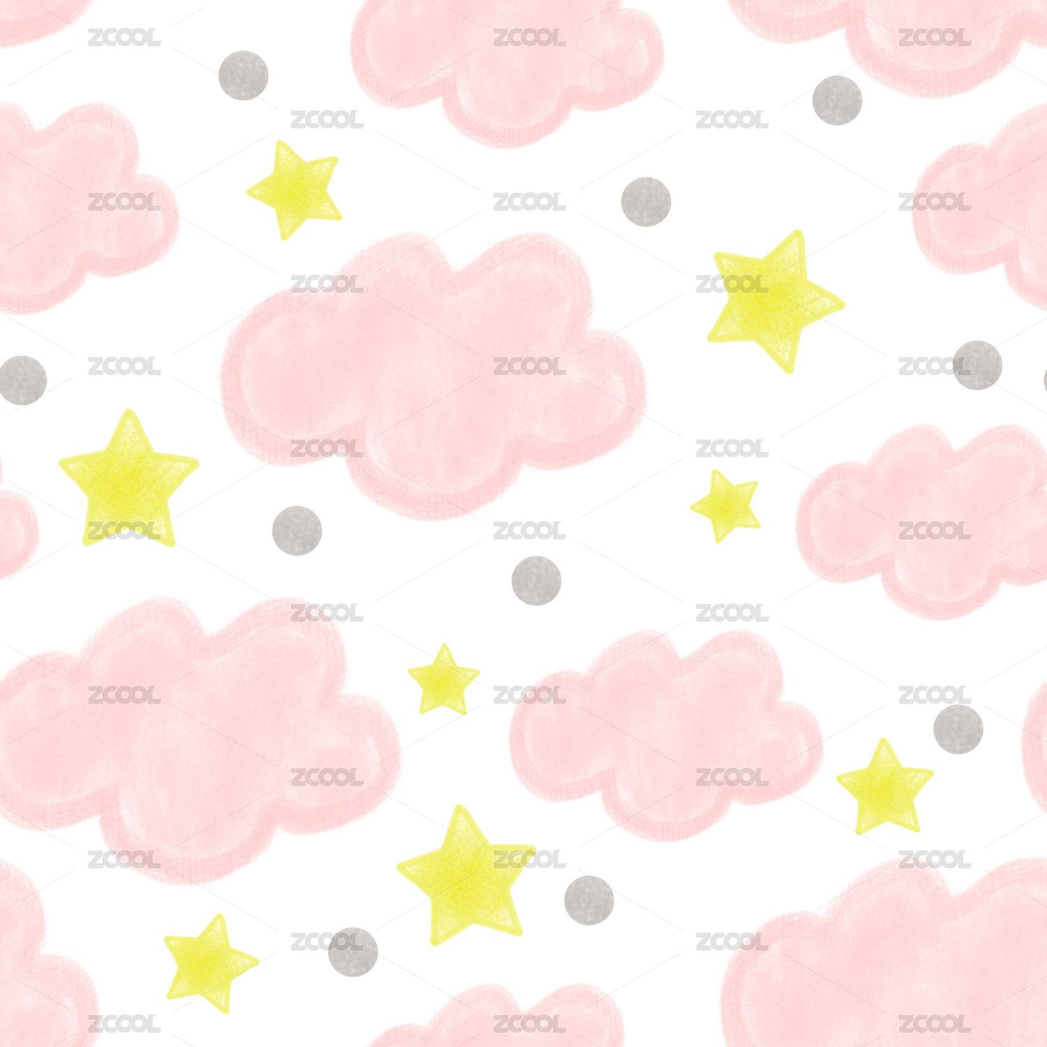 卡通小清新水彩風(fēng)云朵星星平鋪無(wú)縫背景