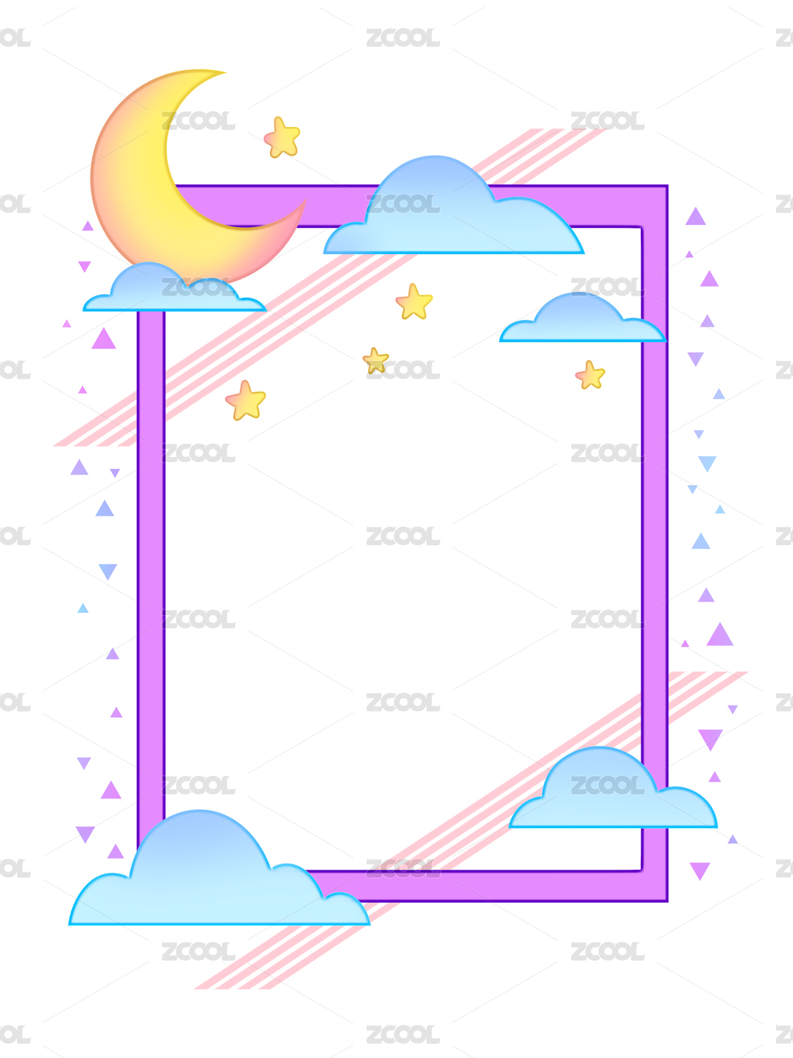 手繪卡通月亮云朵星星紫色對(duì)話框插畫(huà)