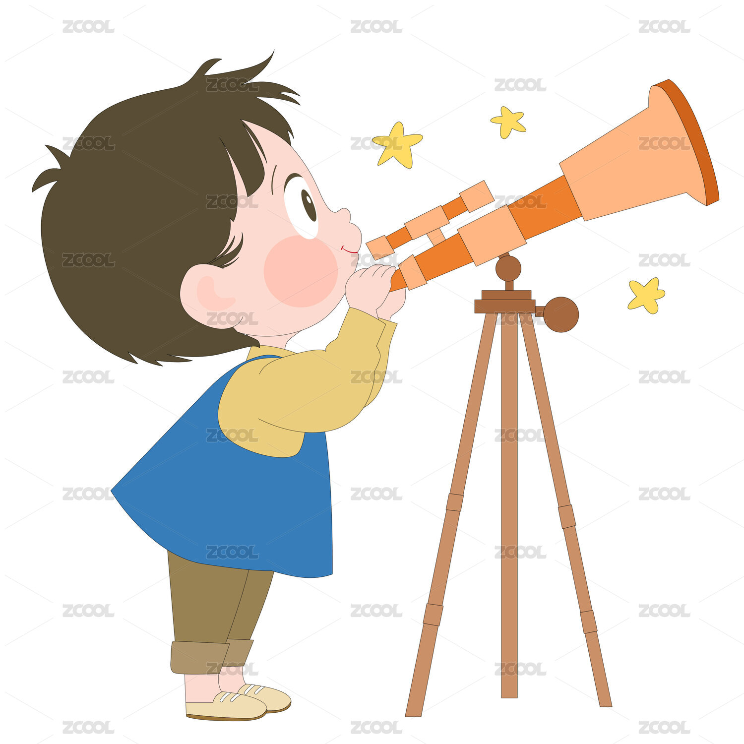 卡通兒童透過(guò)望遠(yuǎn)鏡觀察星星的男孩教育插畫(huà)