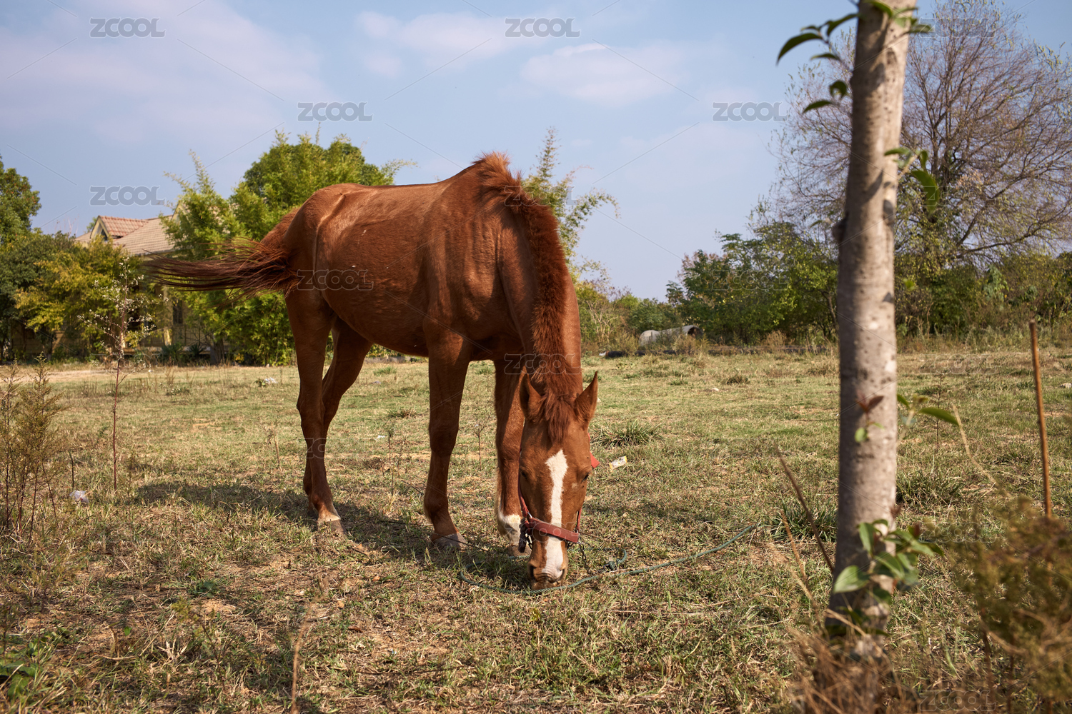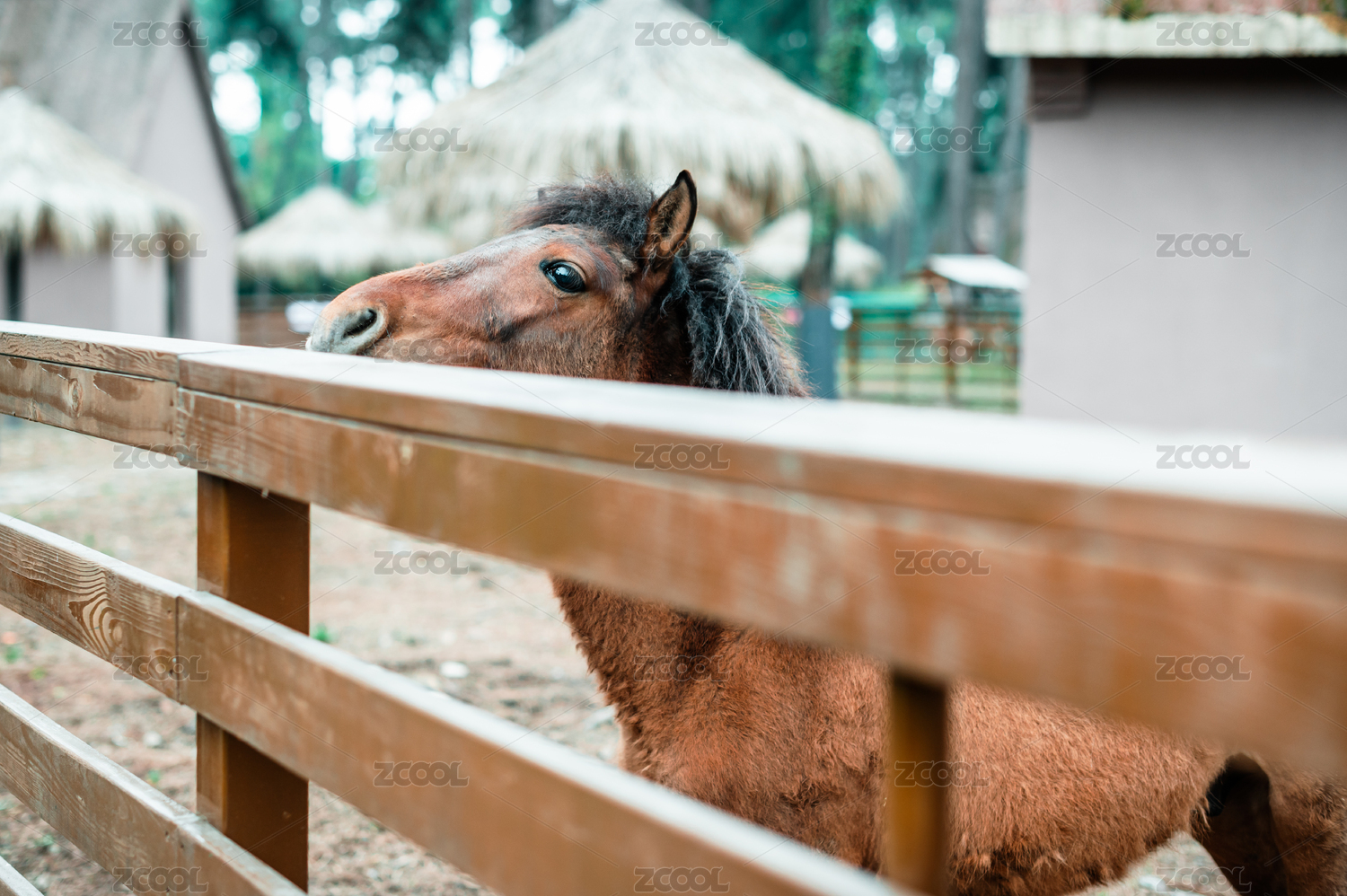 戶外曠野馬圈里養(yǎng)殖的馬匹