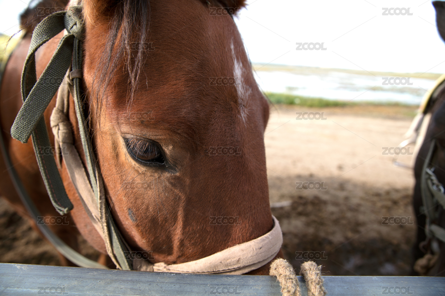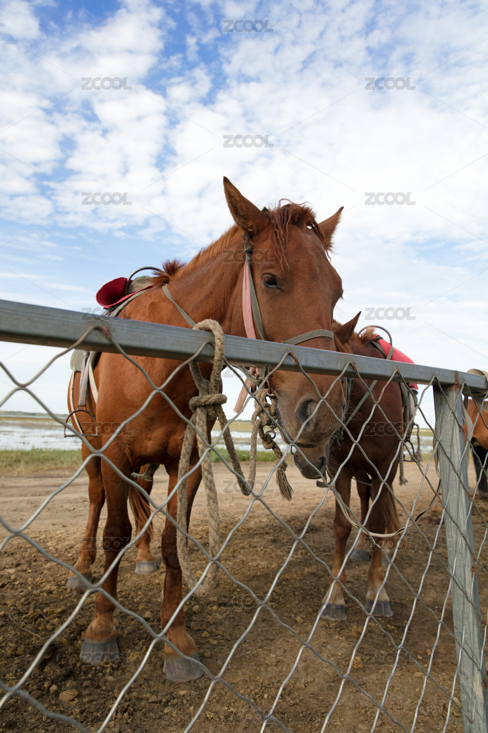 中國張北縣天鵝湖景點(diǎn)馬圈里的馬匹