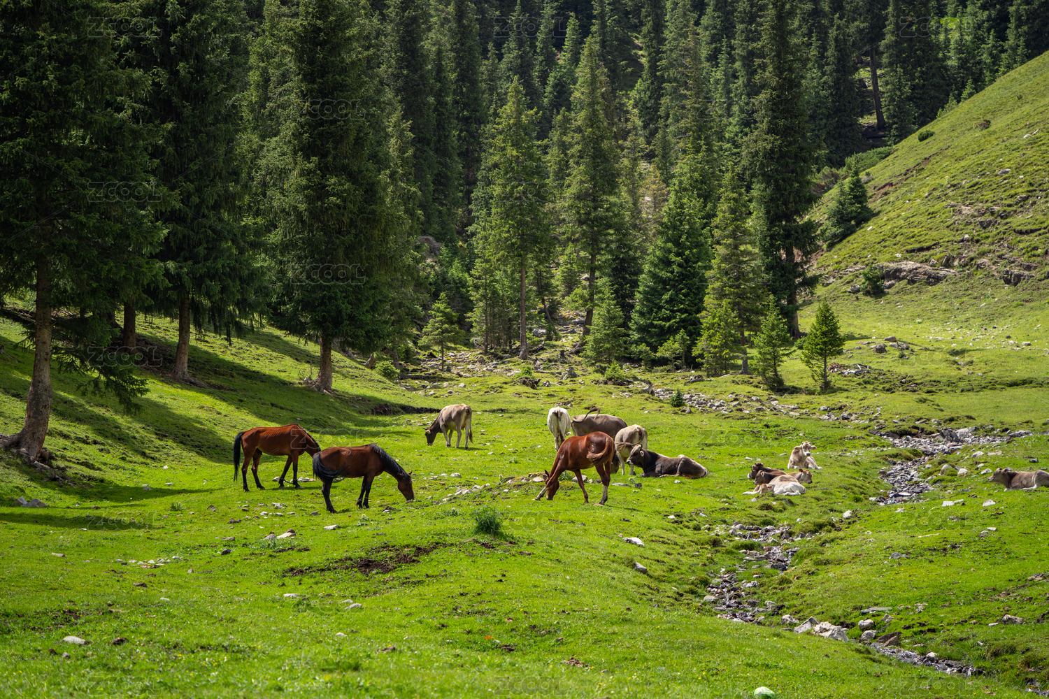 中國新疆夏季伊犁昭蘇伊昭公路晴天實(shí)況