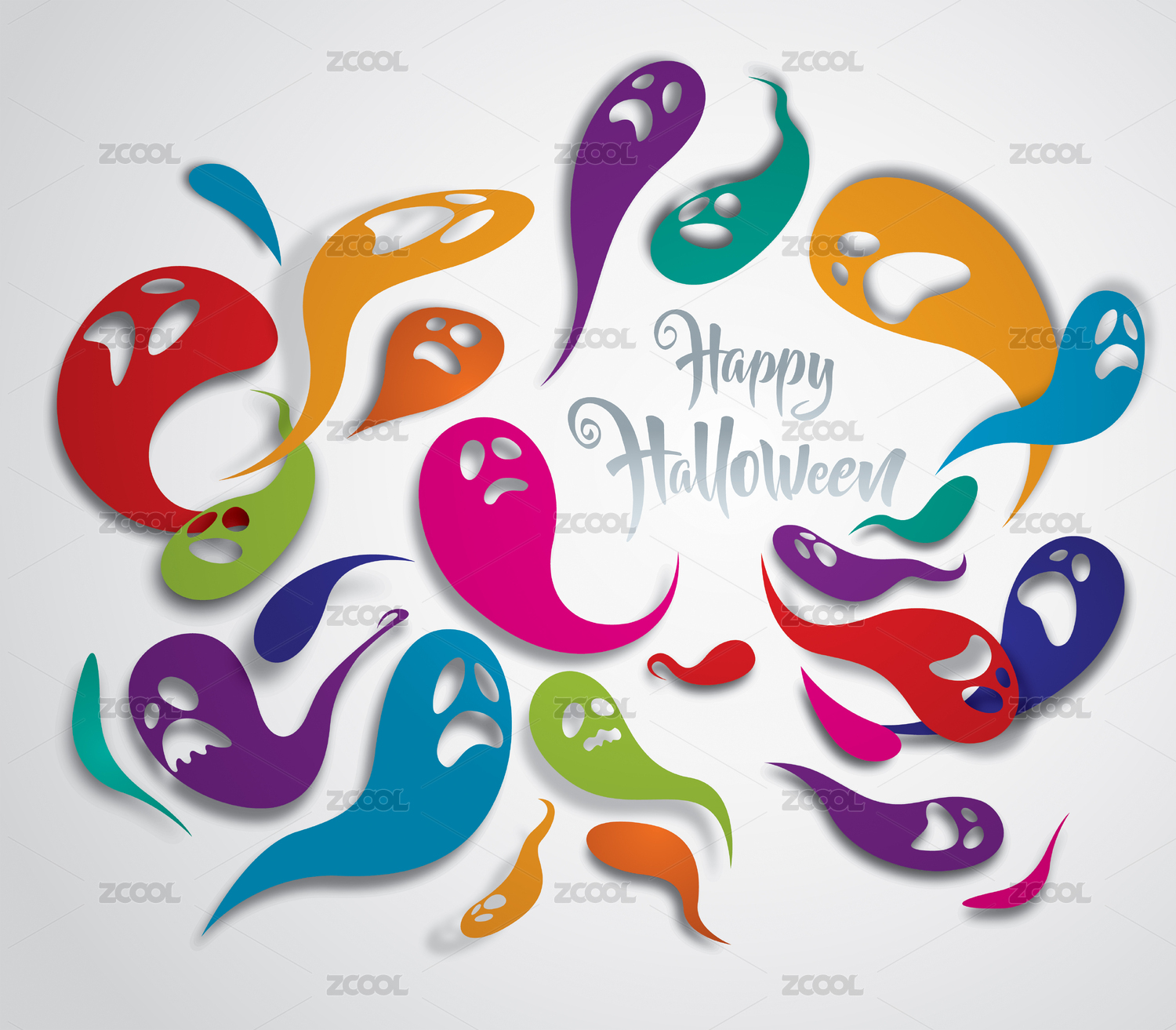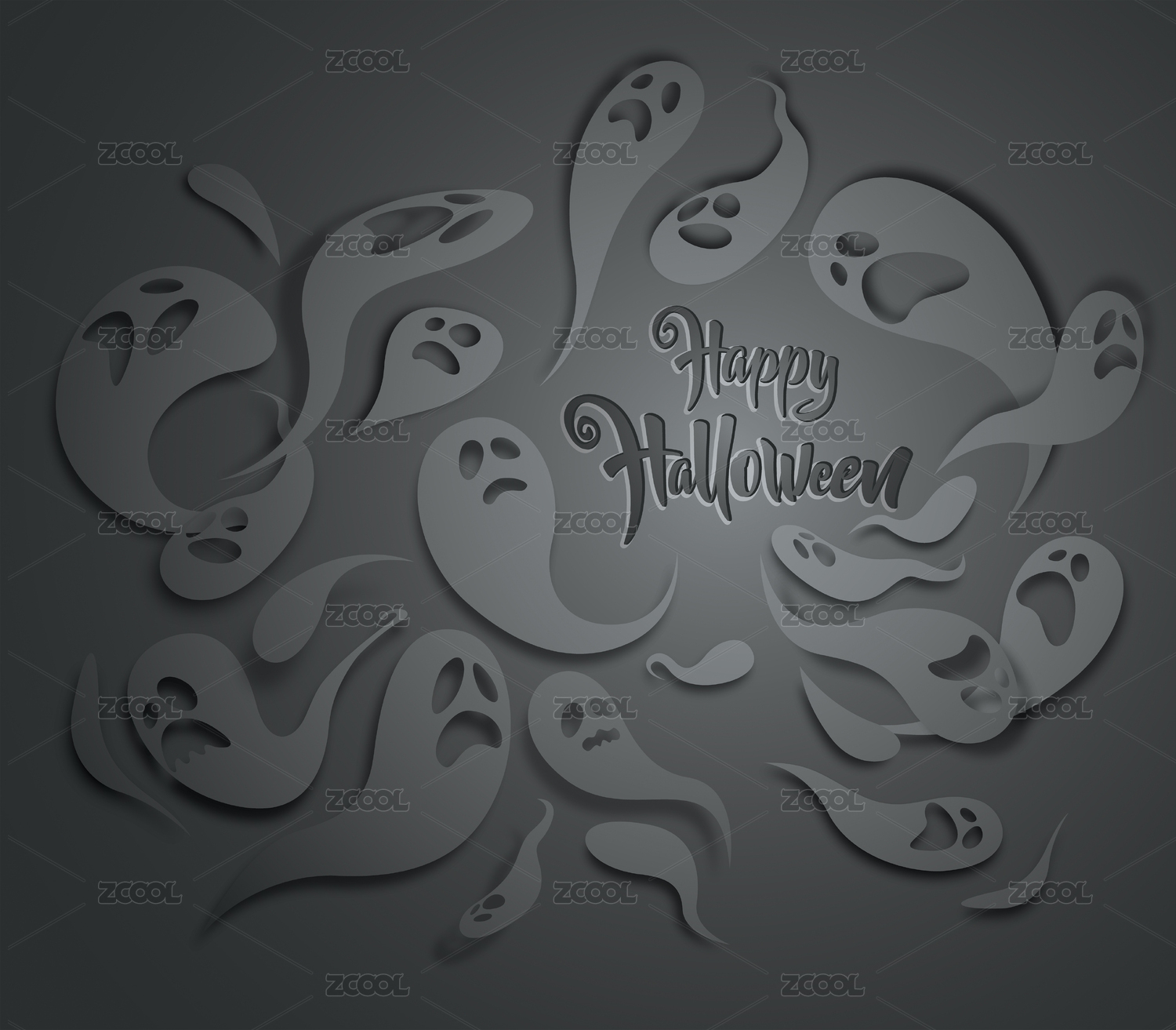 萬圣節(jié)快樂。幽靈鬼主題卡片。