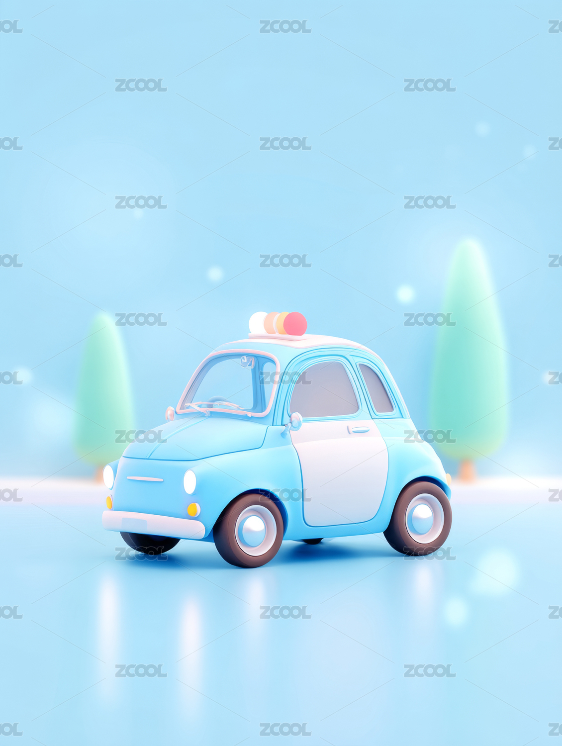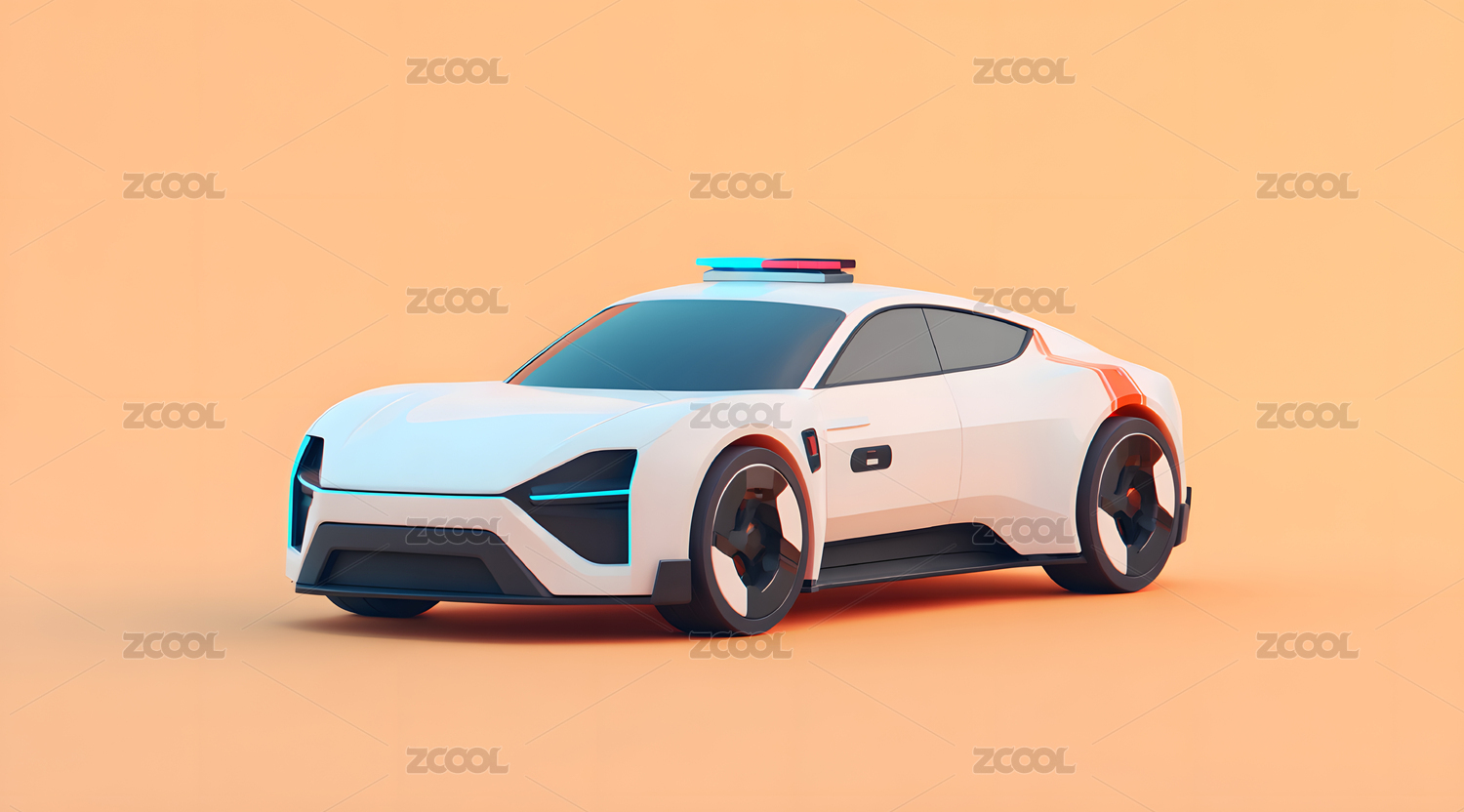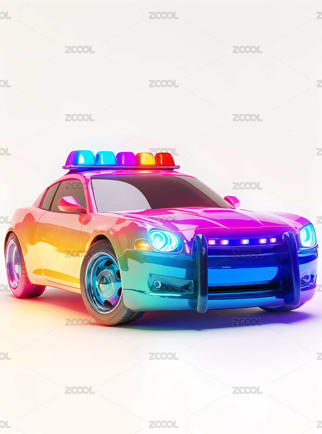 3D卡通彩虹色警車