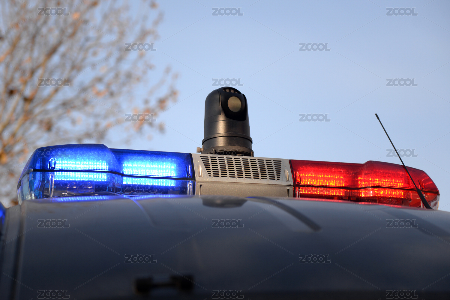 警車頂上的警燈警笛和攝像頭