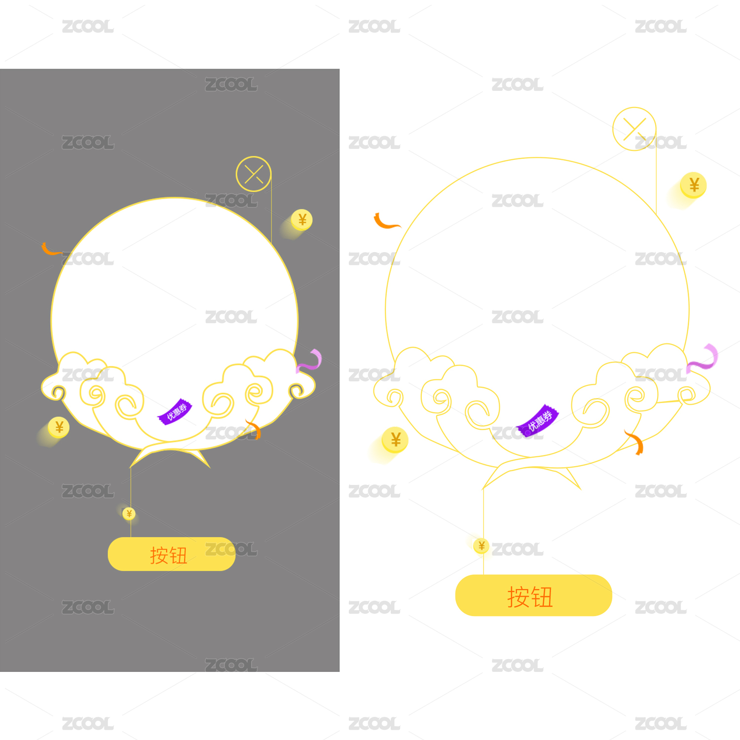 優(yōu)惠券與金幣元素相結(jié)合的彈窗