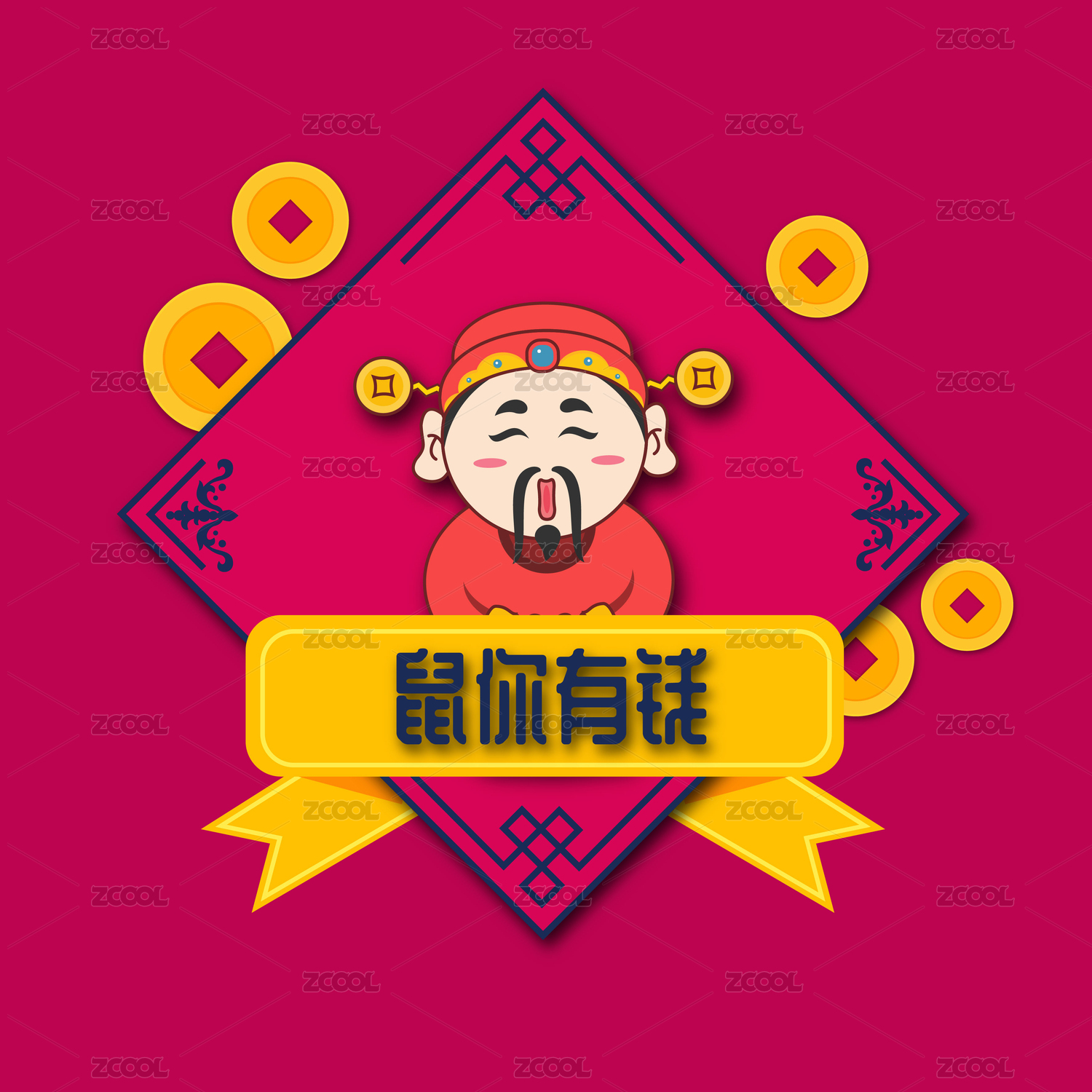 剪紙風(fēng)格財(cái)神爺彈窗矢量插畫