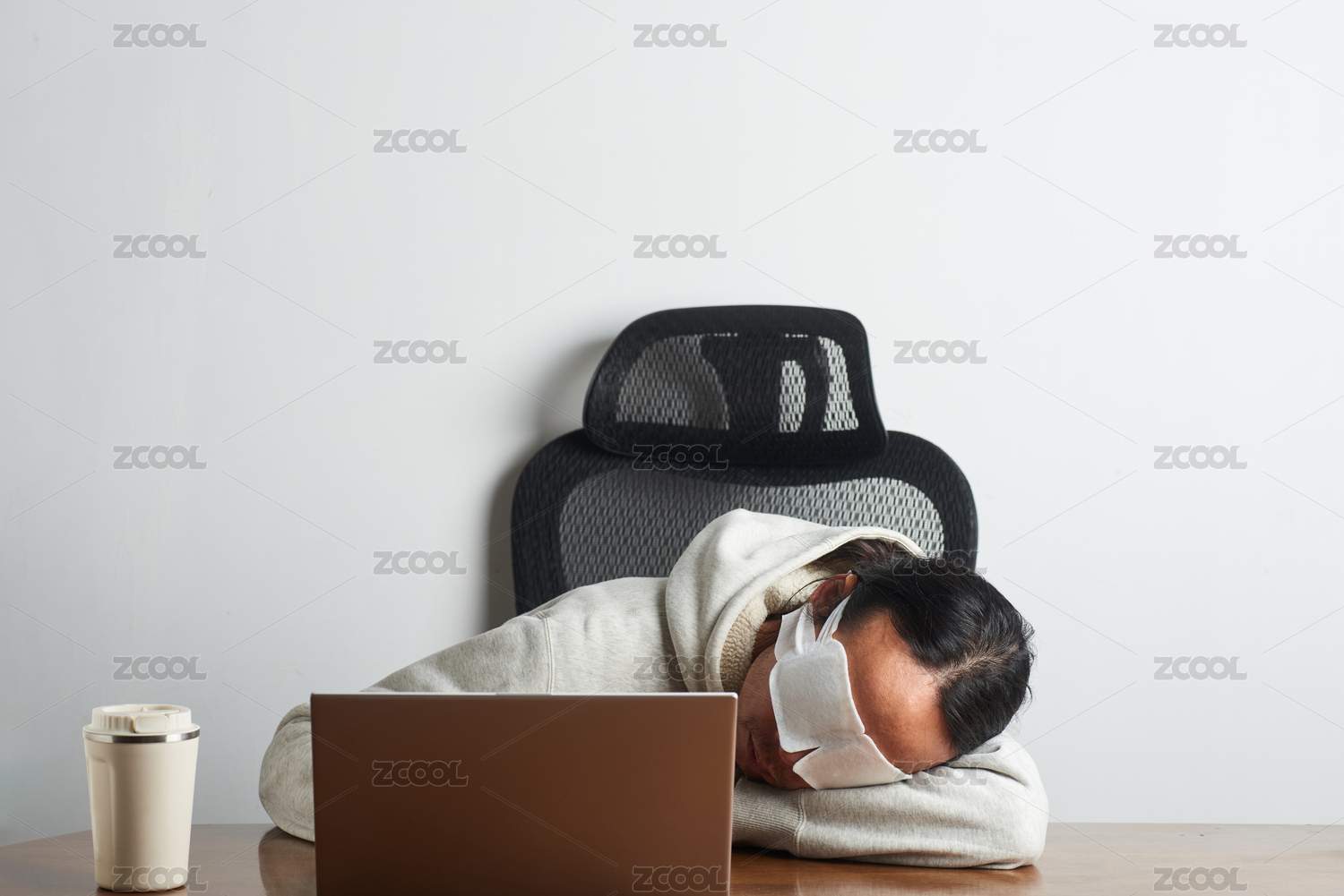 戴著發(fā)熱護(hù)眼熱敷蒸汽眼罩休息的男子