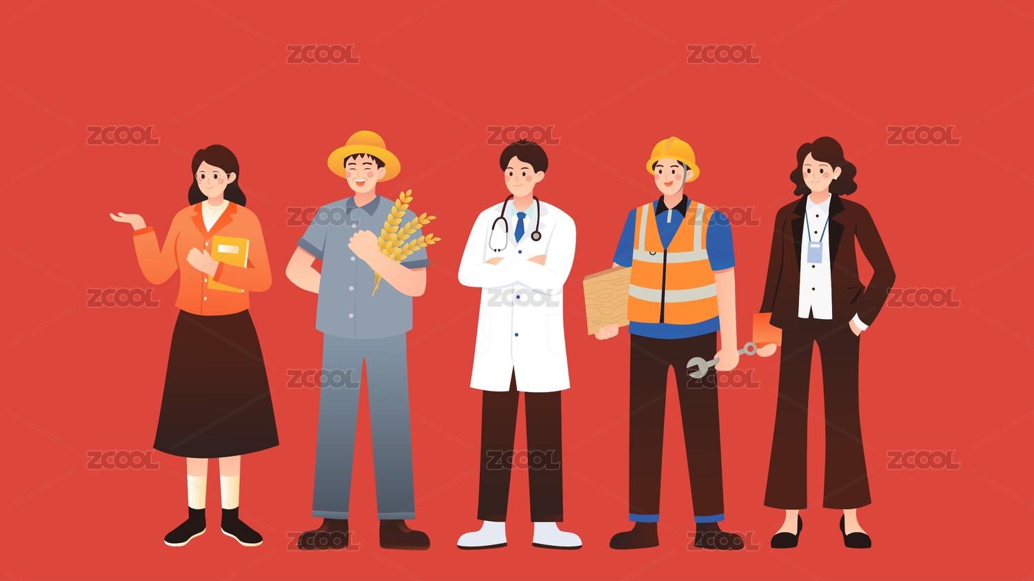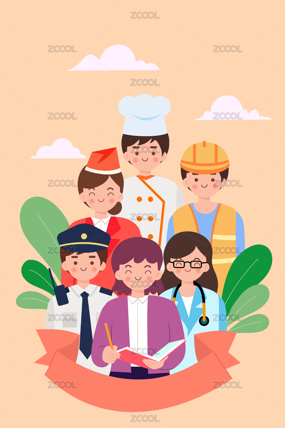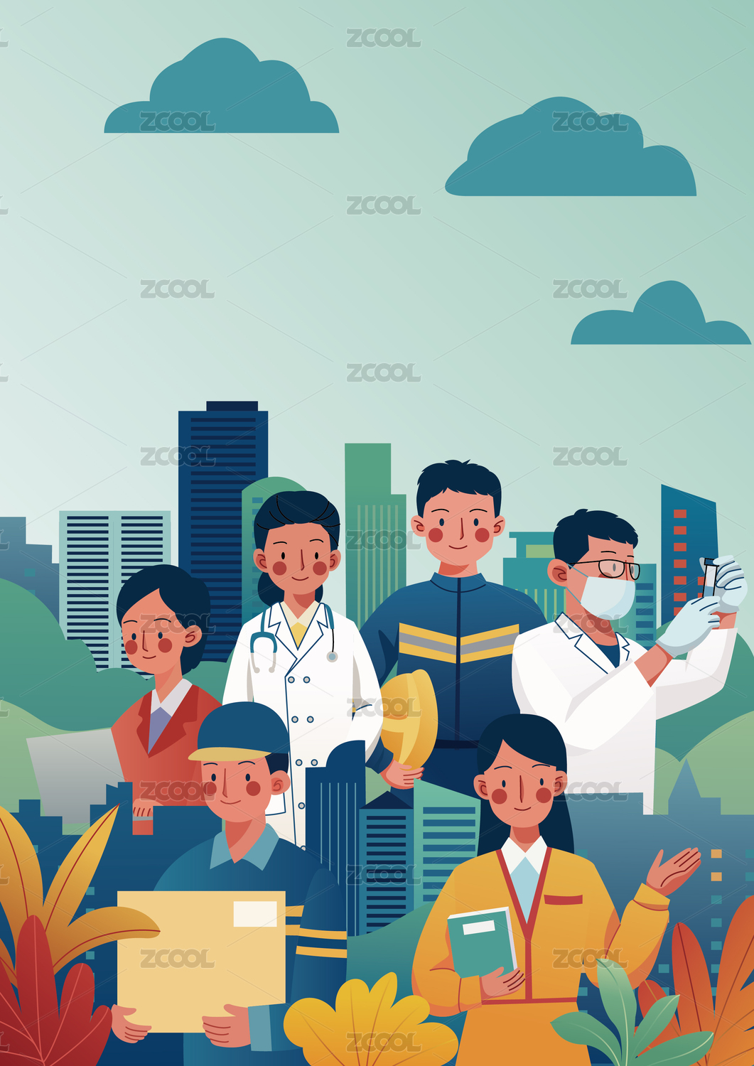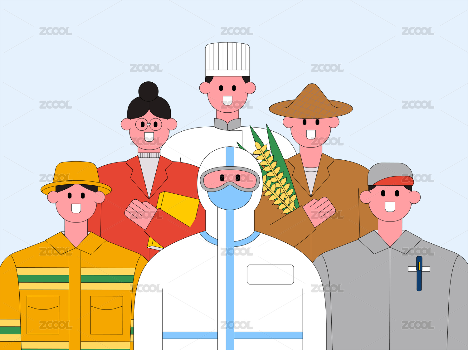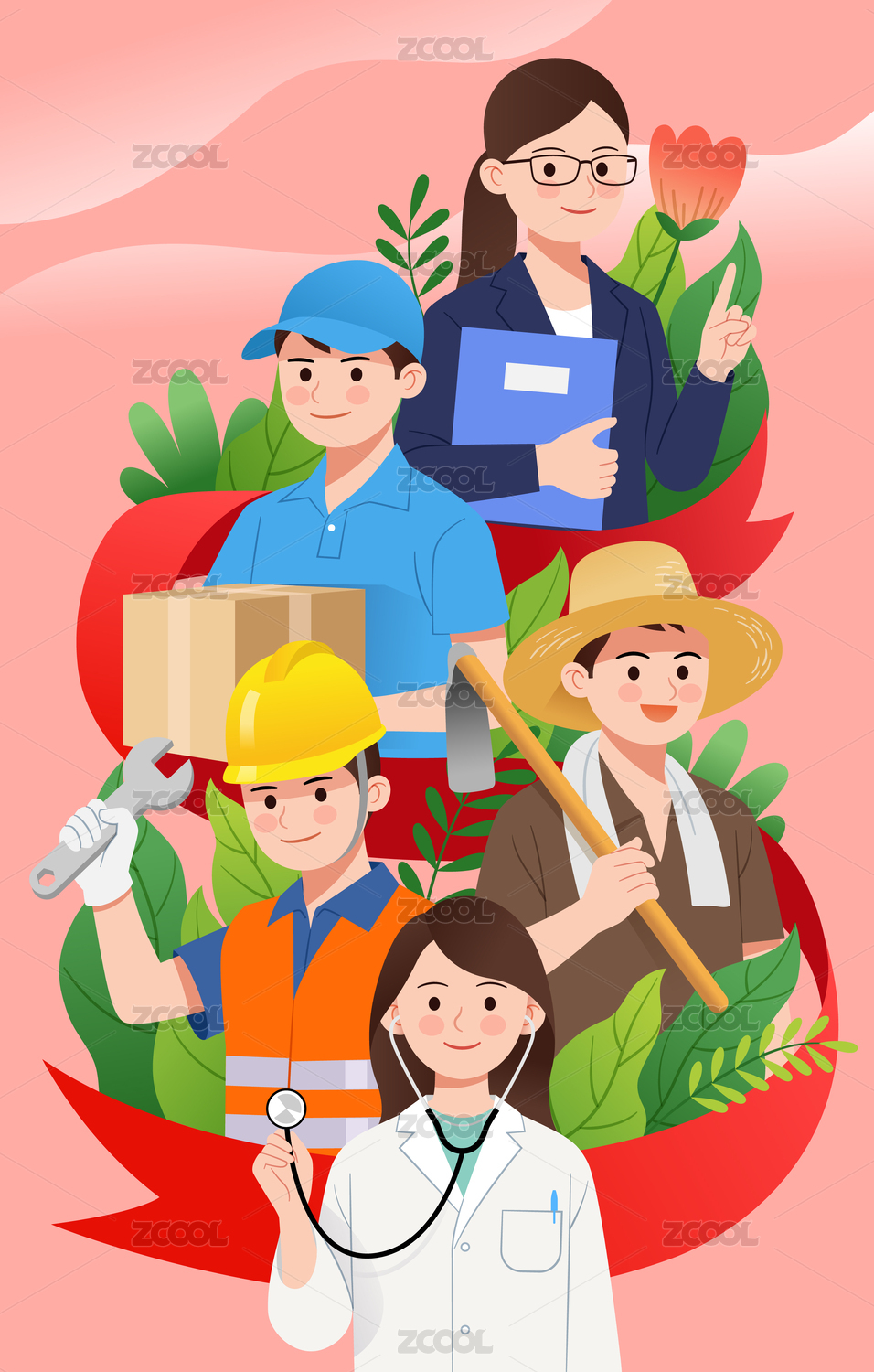 勞動節(jié),各行各業(yè)人員,插畫,五一海報