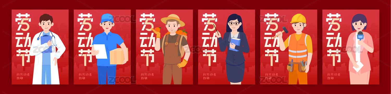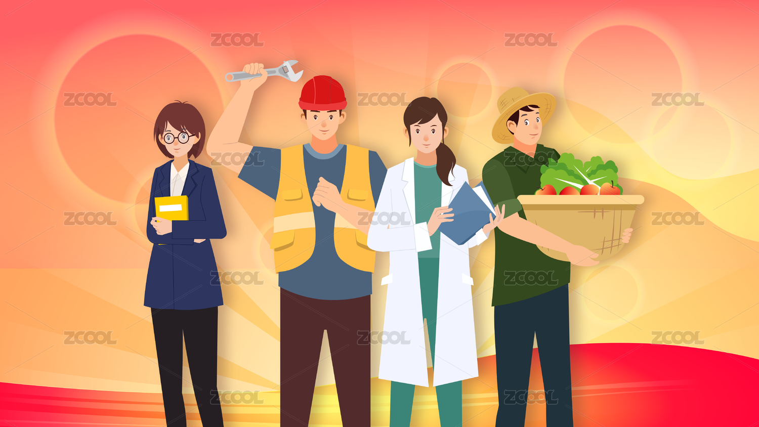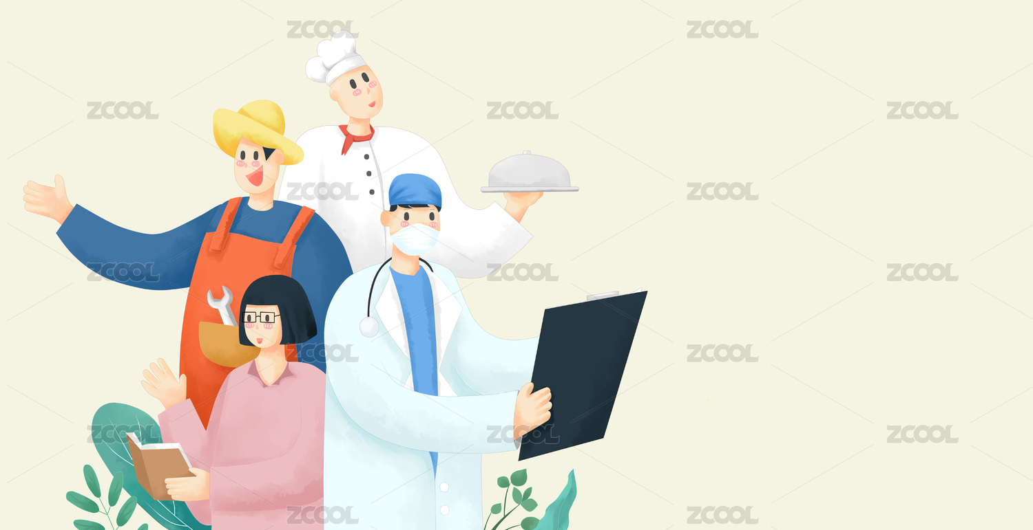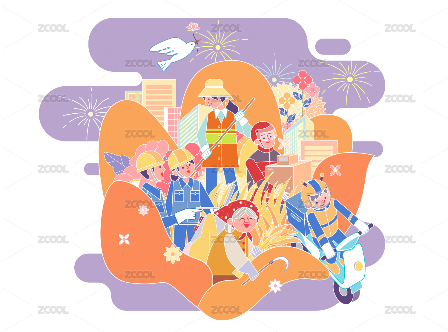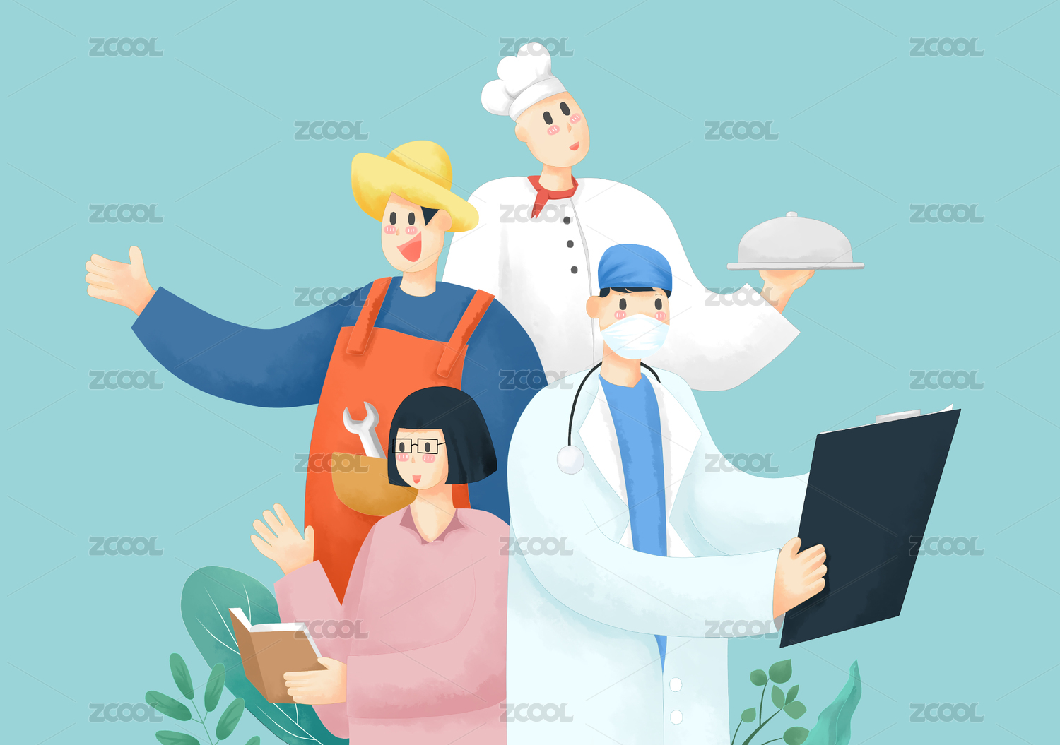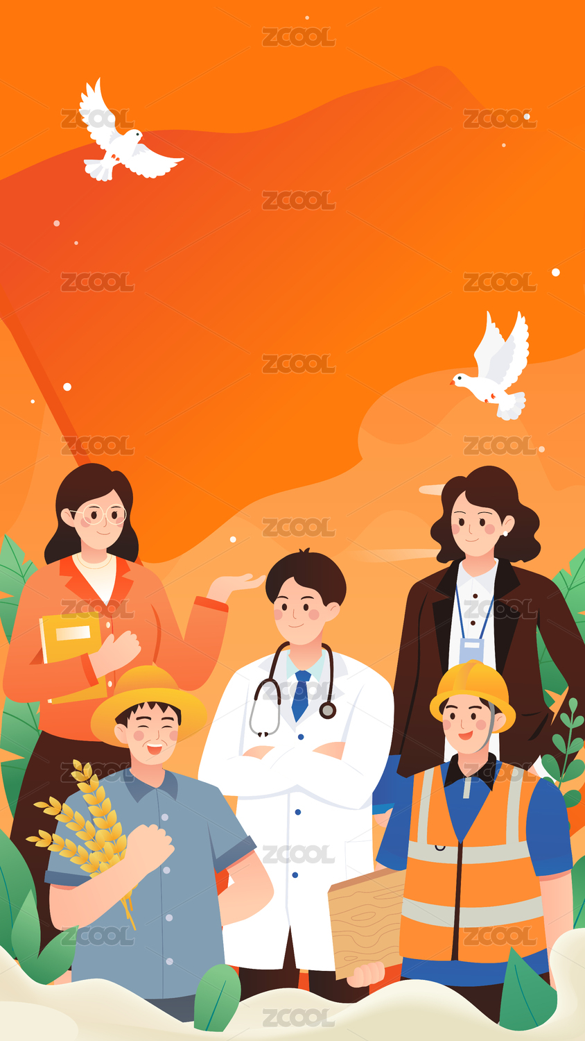 勞動節(jié),各行各業(yè)人員,插畫,五一海報