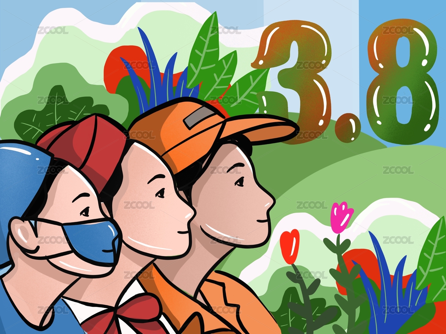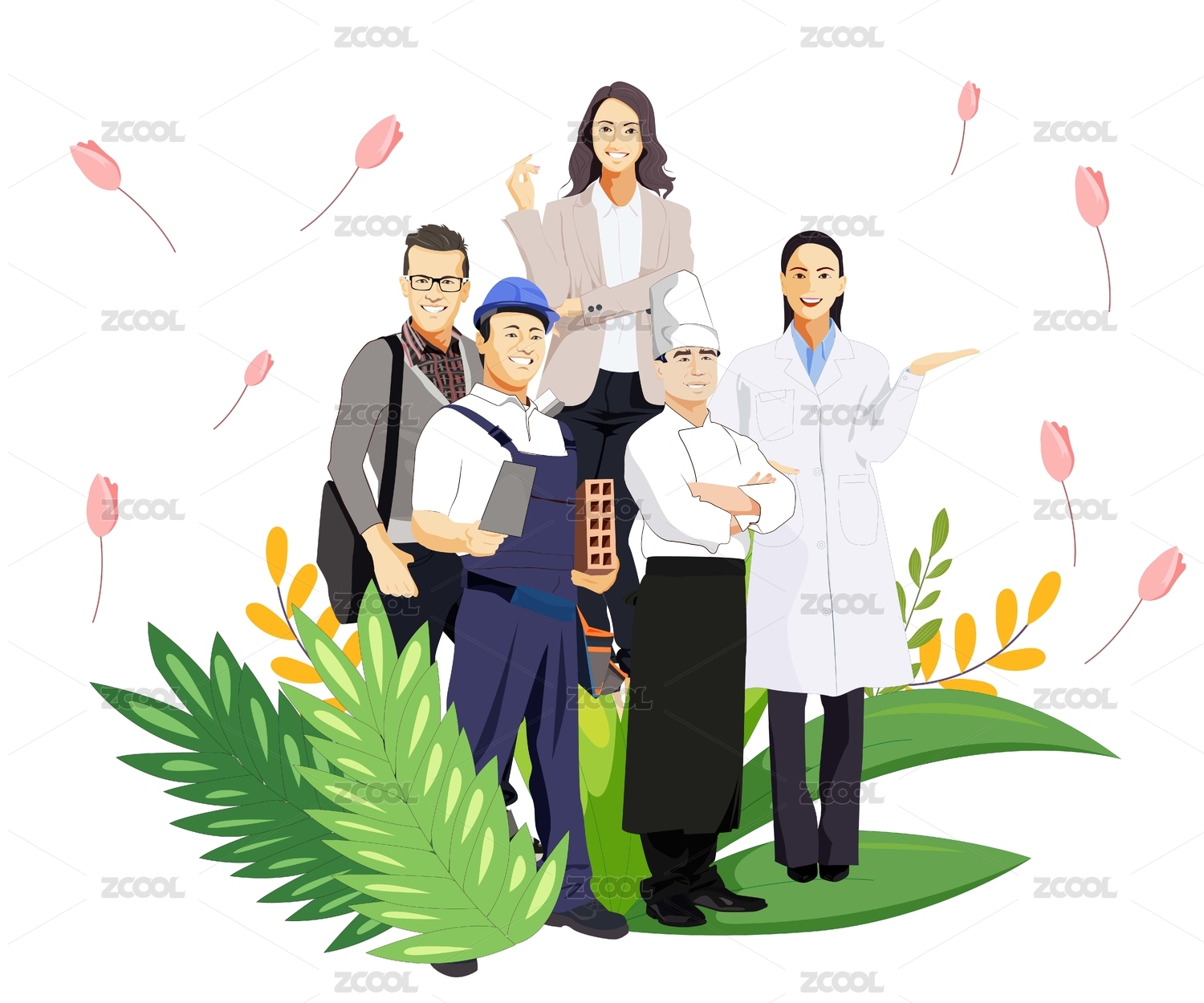 勞動節(jié)各行各業(yè)的勞動人民聚集在花朵中