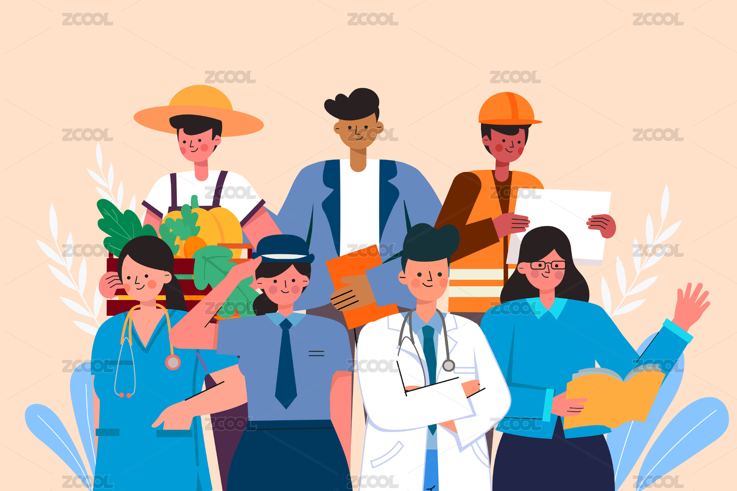 各行各業(yè)勞動人民勞動節(jié)扁平風插畫