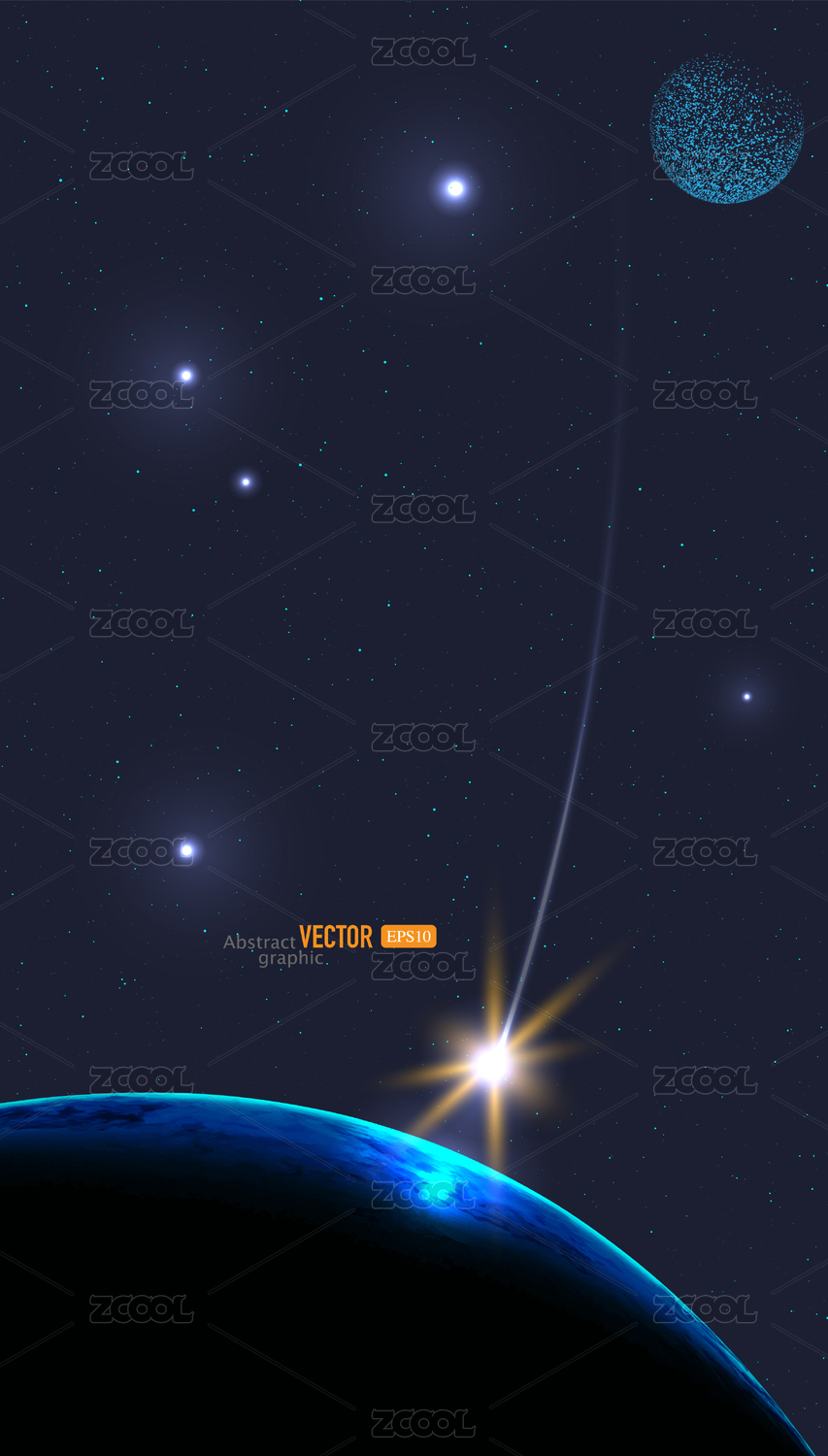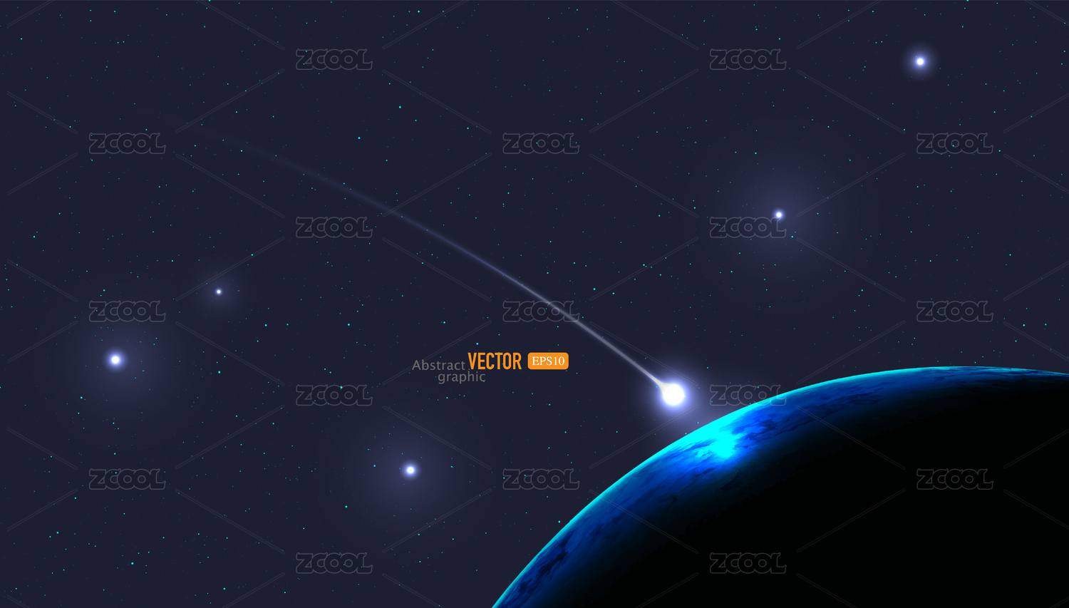 抽象矢量帶軌跡流星撞擊藍色地球科技背景