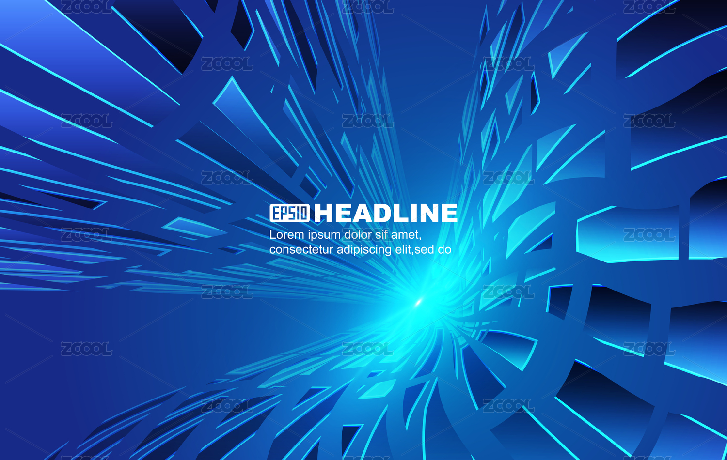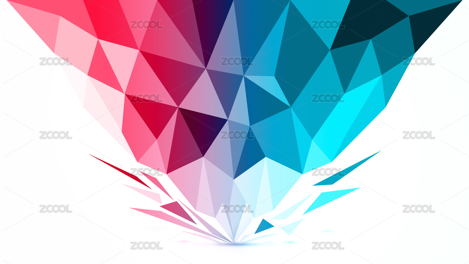 藍色多邊形碎片撞擊力量感科技矢量背景