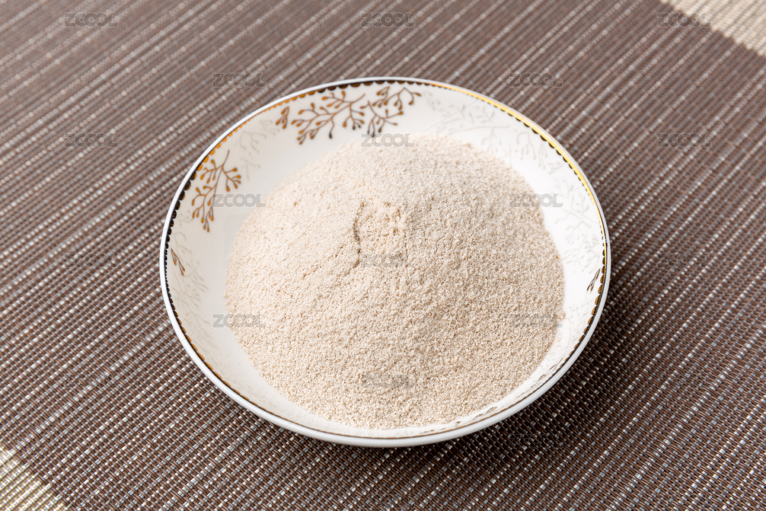 壽司簾上白色瓷碟裝的內(nèi)蒙古特產(chǎn)牛干