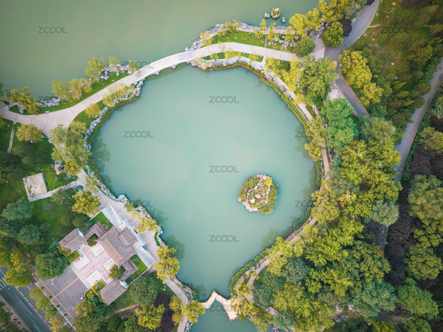 航拍晉城澤州公園景觀園林