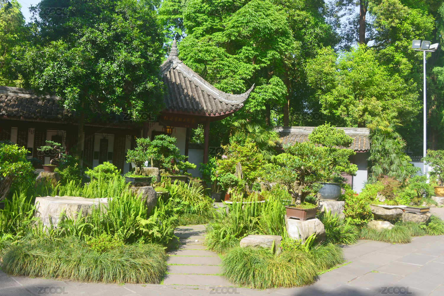 中國(guó)四川成都杜甫草堂 盆景園景觀園林