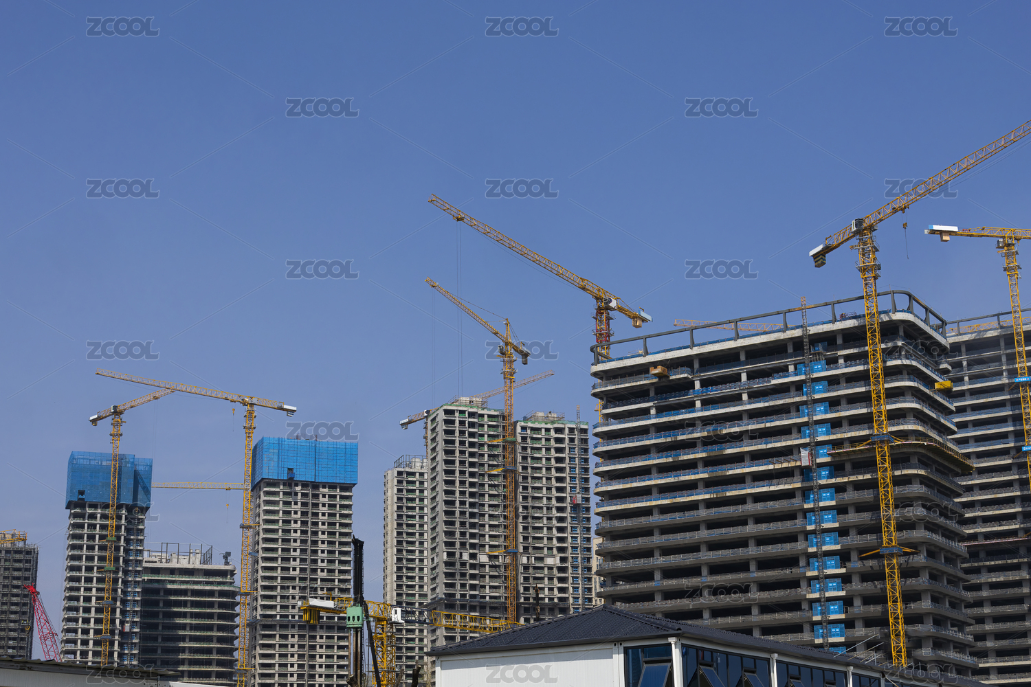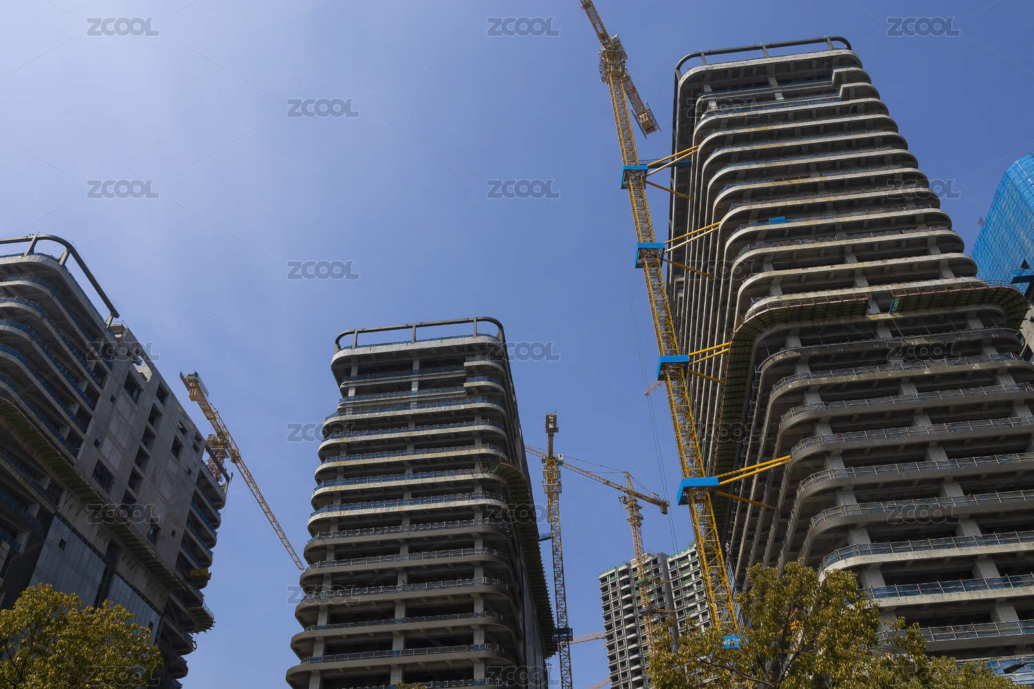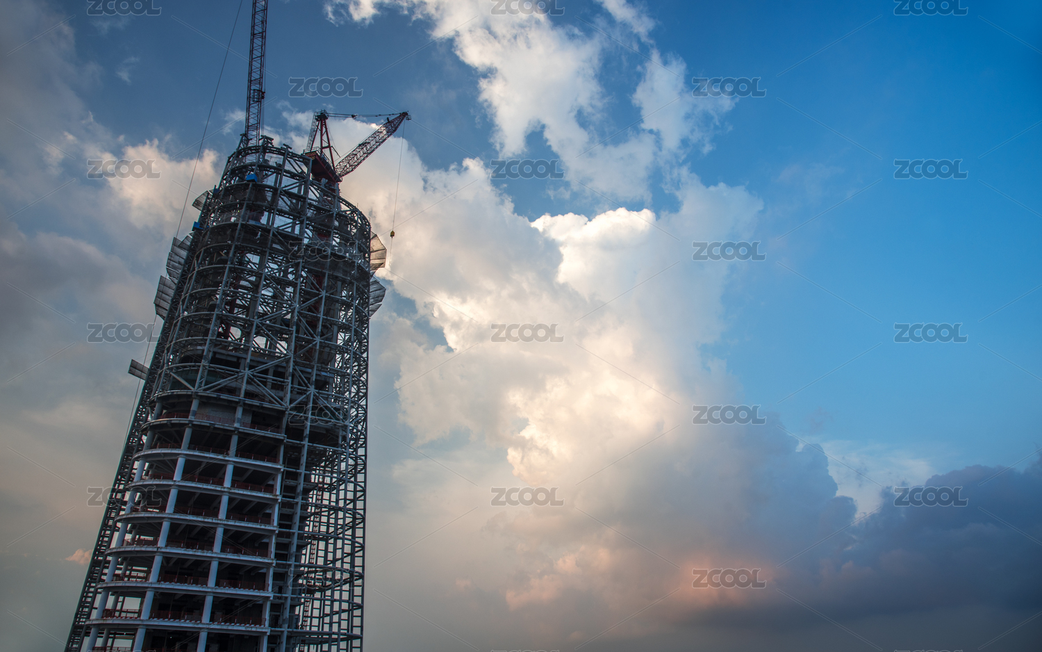 藍(lán)天背景中正在建造中的高樓大廈