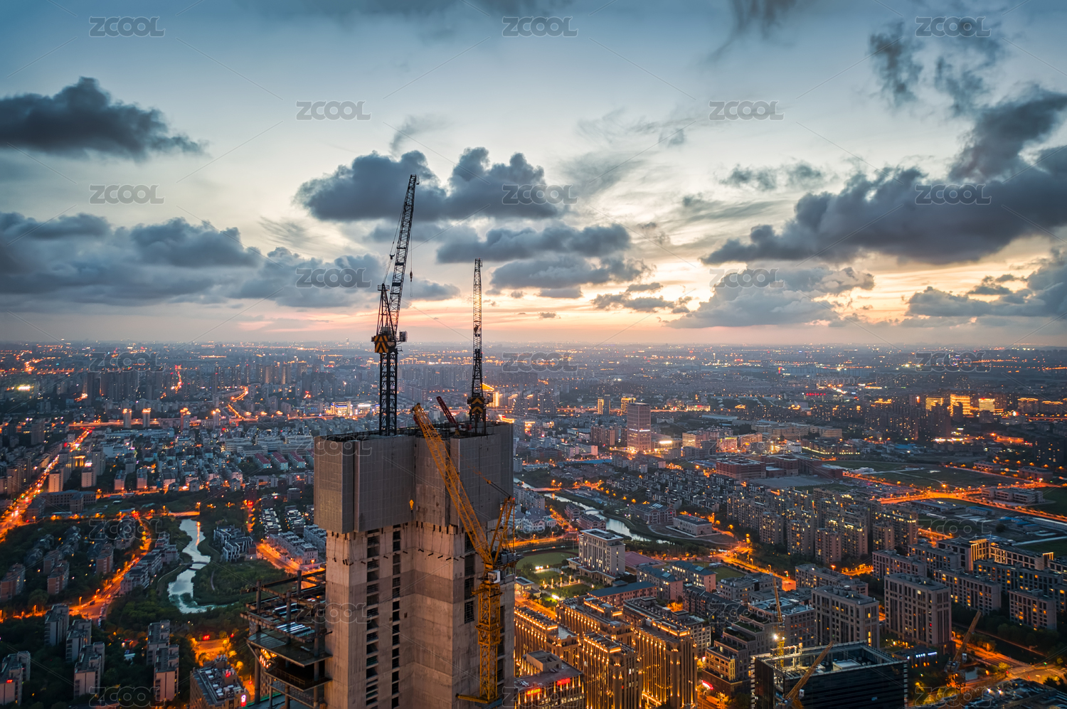 中國(guó)上海五角場(chǎng)建造施工中的高層寫字樓