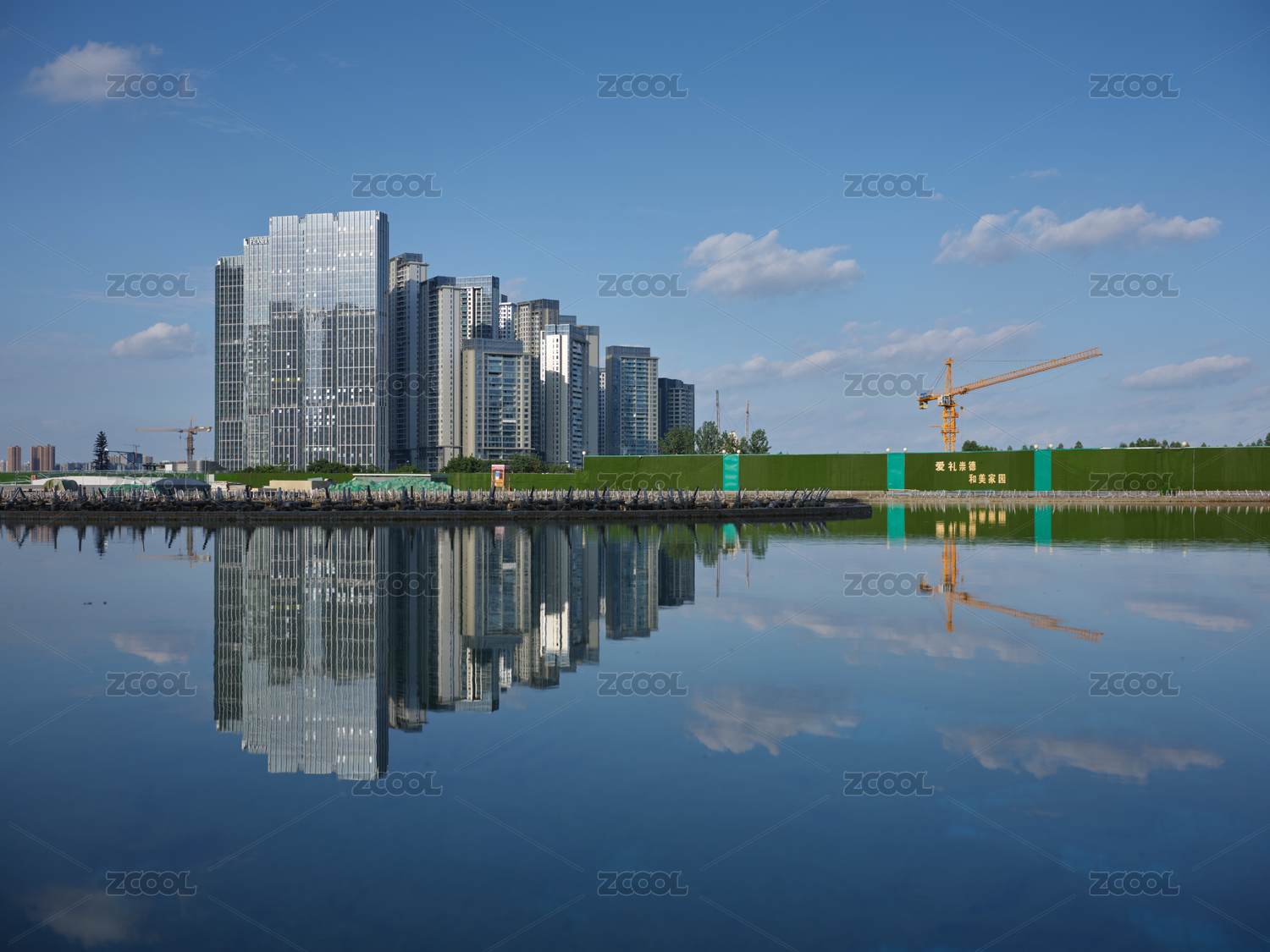 藍(lán)天白云下建設(shè)中的城市天際線建筑大廈風(fēng)光