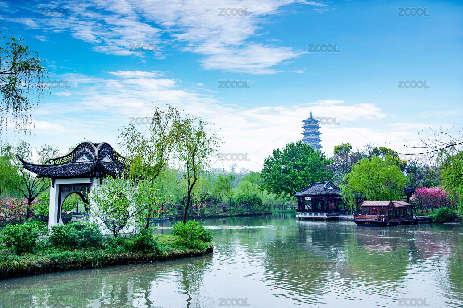 楊州瘦西湖園林中的亭臺樓閣