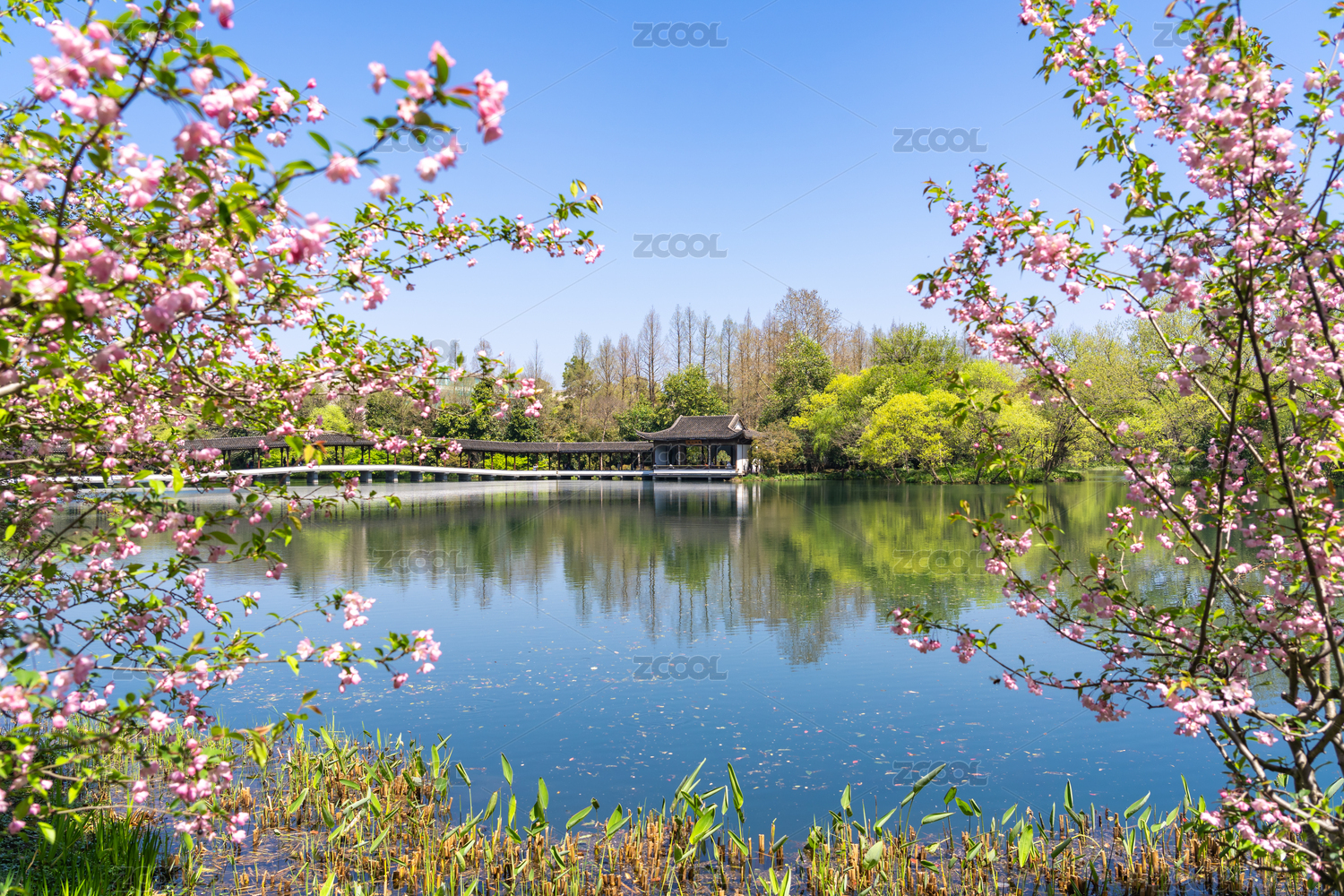 西湖浴鵠灣景區(qū)中國傳統(tǒng)亭臺樓閣建筑霽虹橋