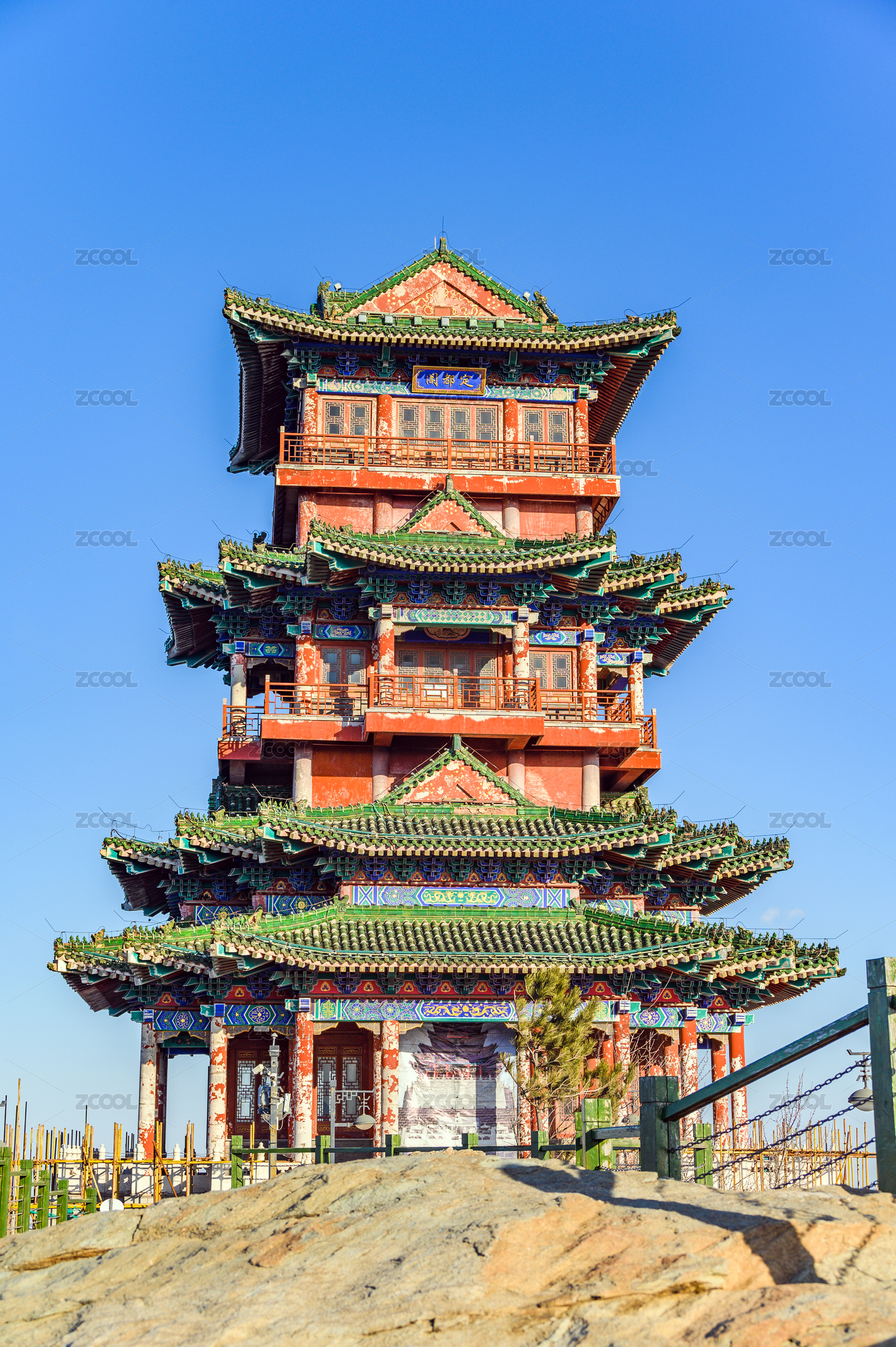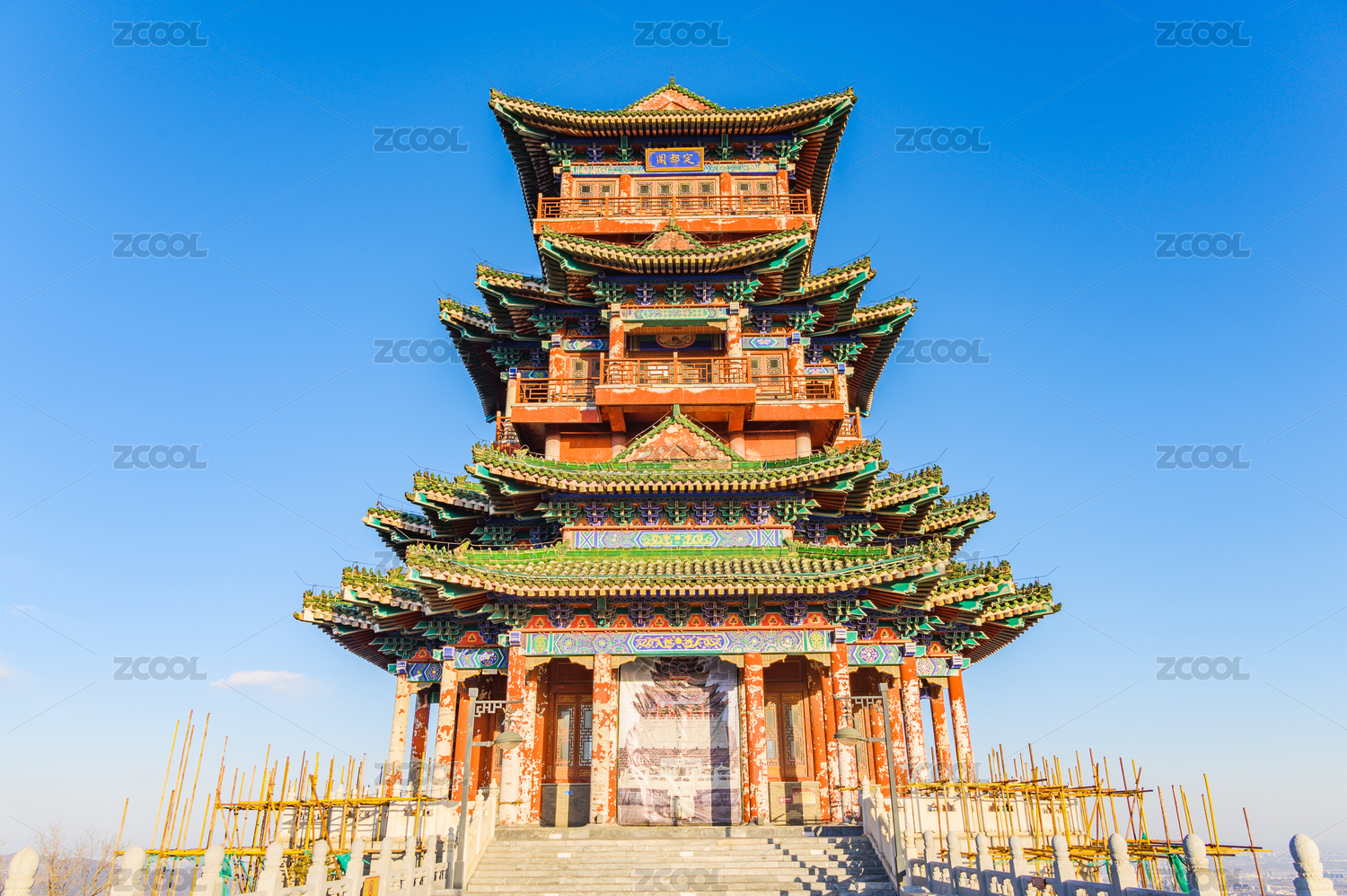 北京西山門頭溝定都閣亭臺樓閣建筑藍天