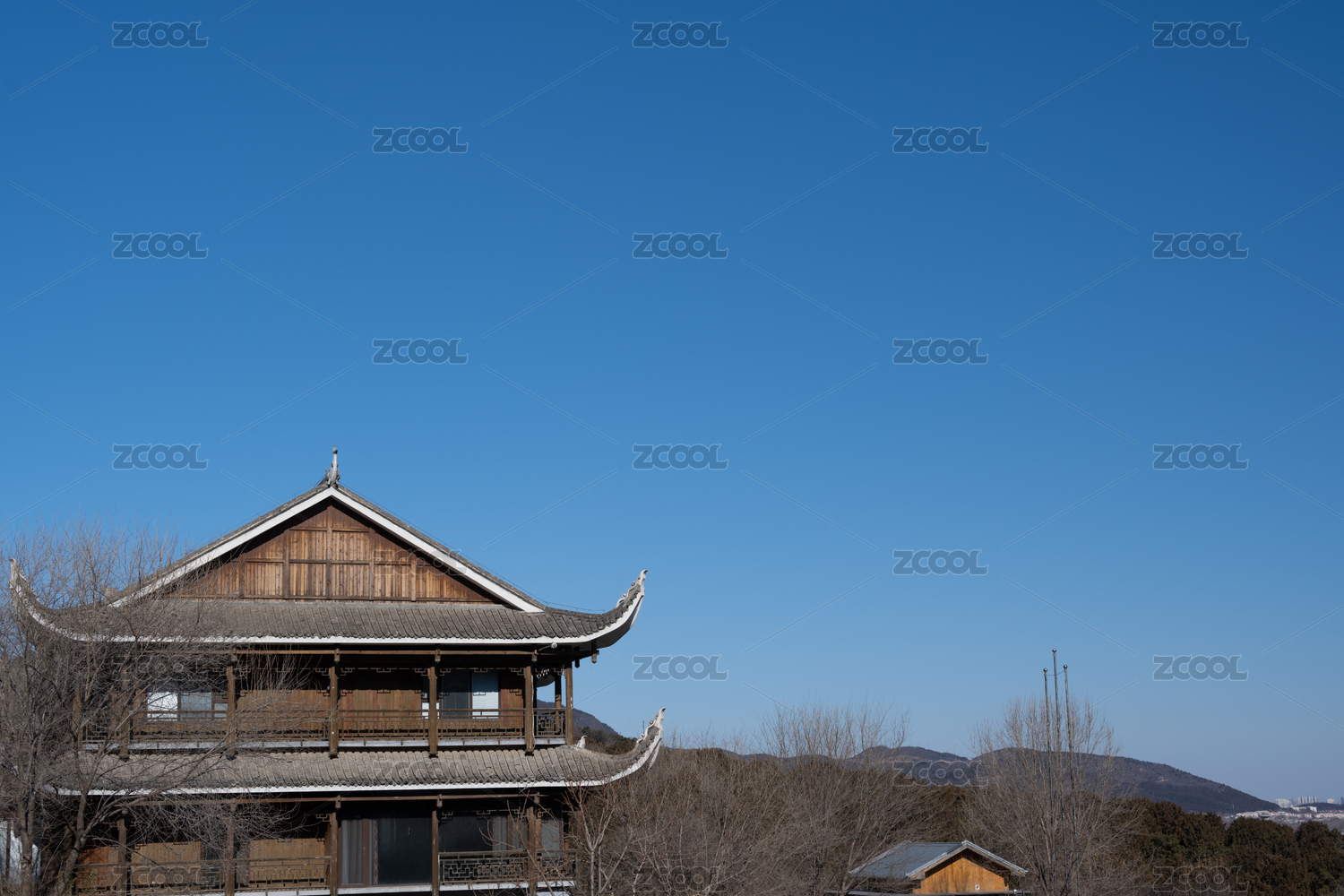 杭州南高峰中式亭臺樓閣意境自然風景