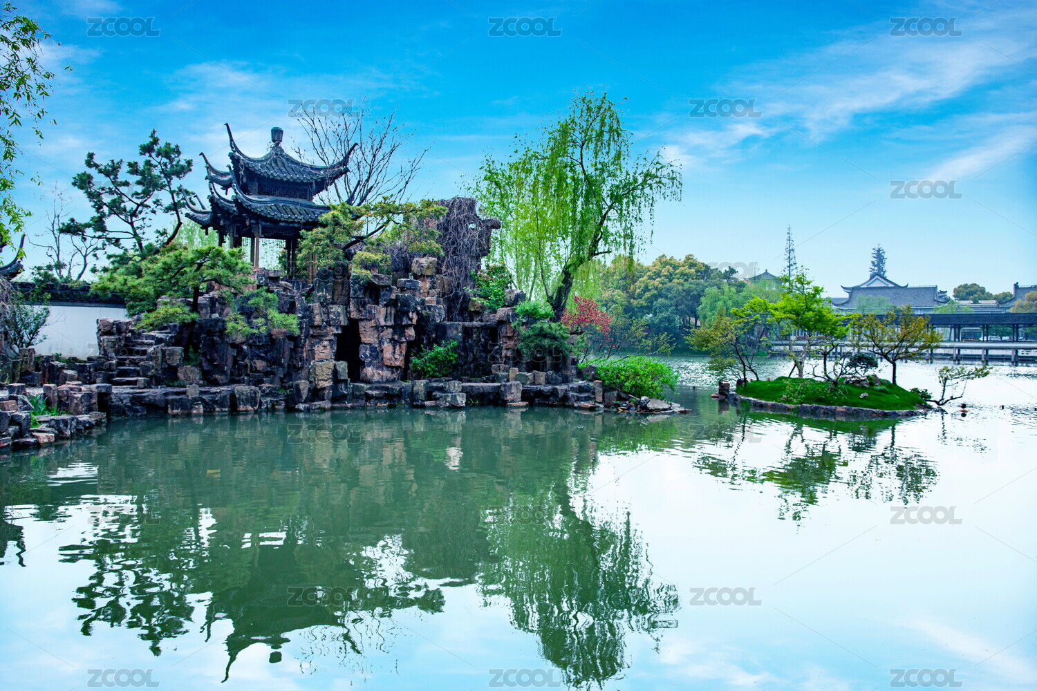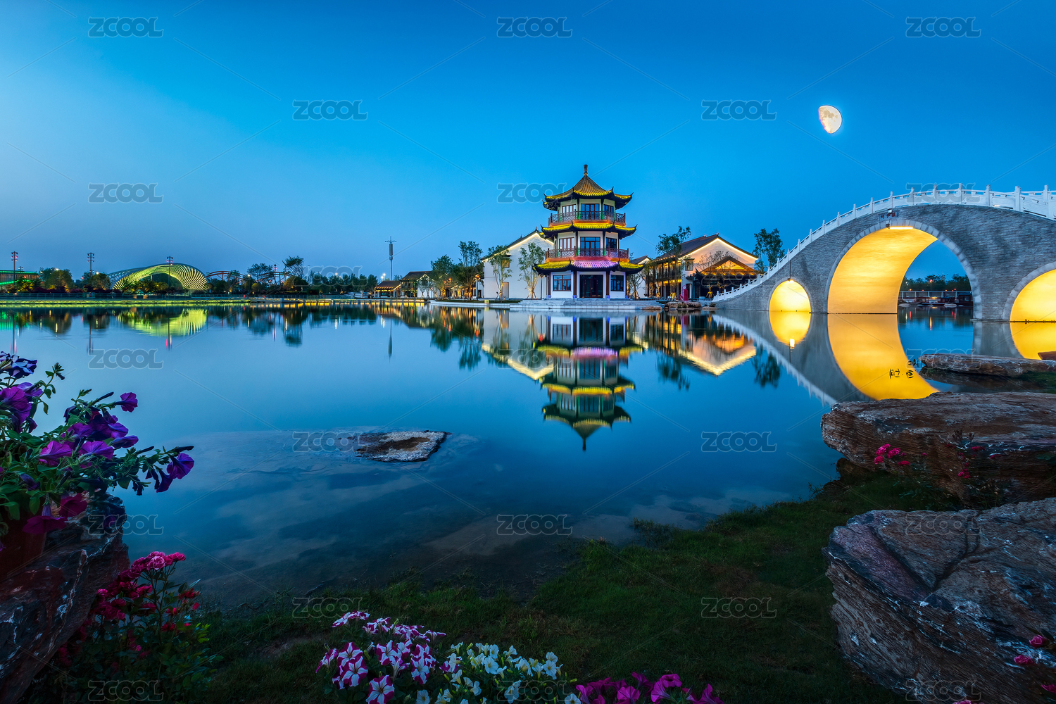 中式園林公園亭臺樓閣拱橋的結(jié)合——重慶晚