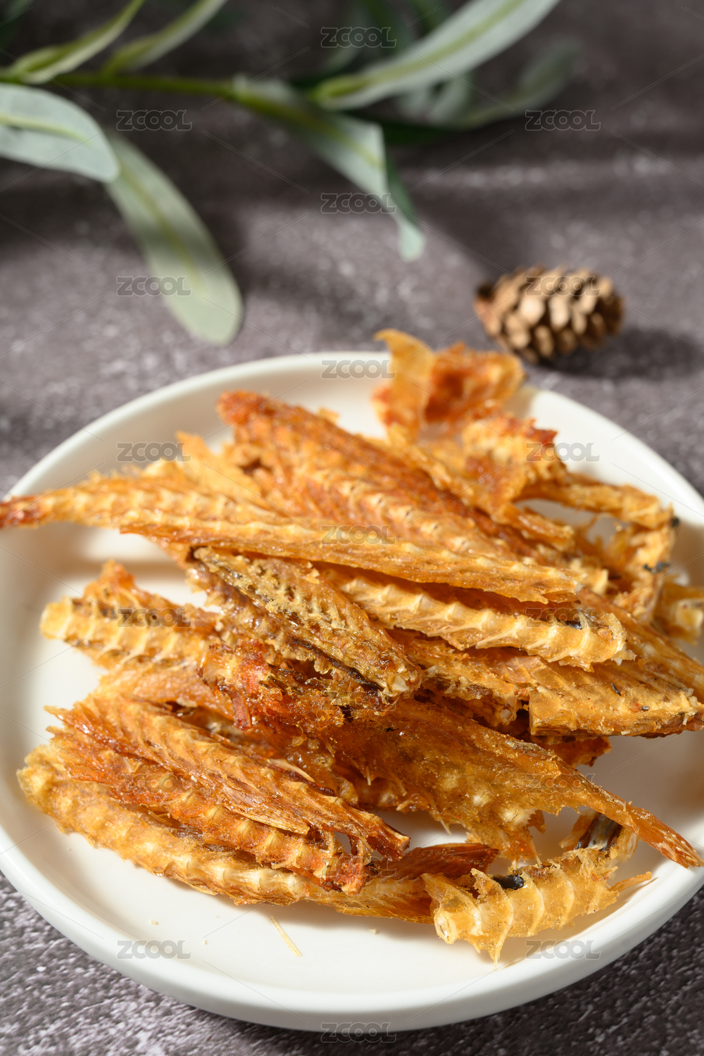 一碟新鮮海鮮美食鯊魚骨頭在白背景上