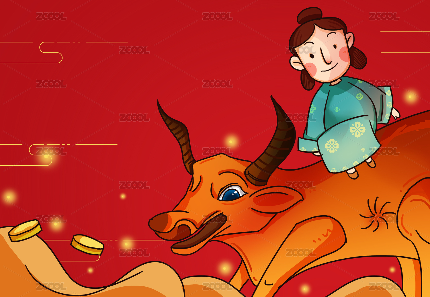 牛年牛背上的小孩