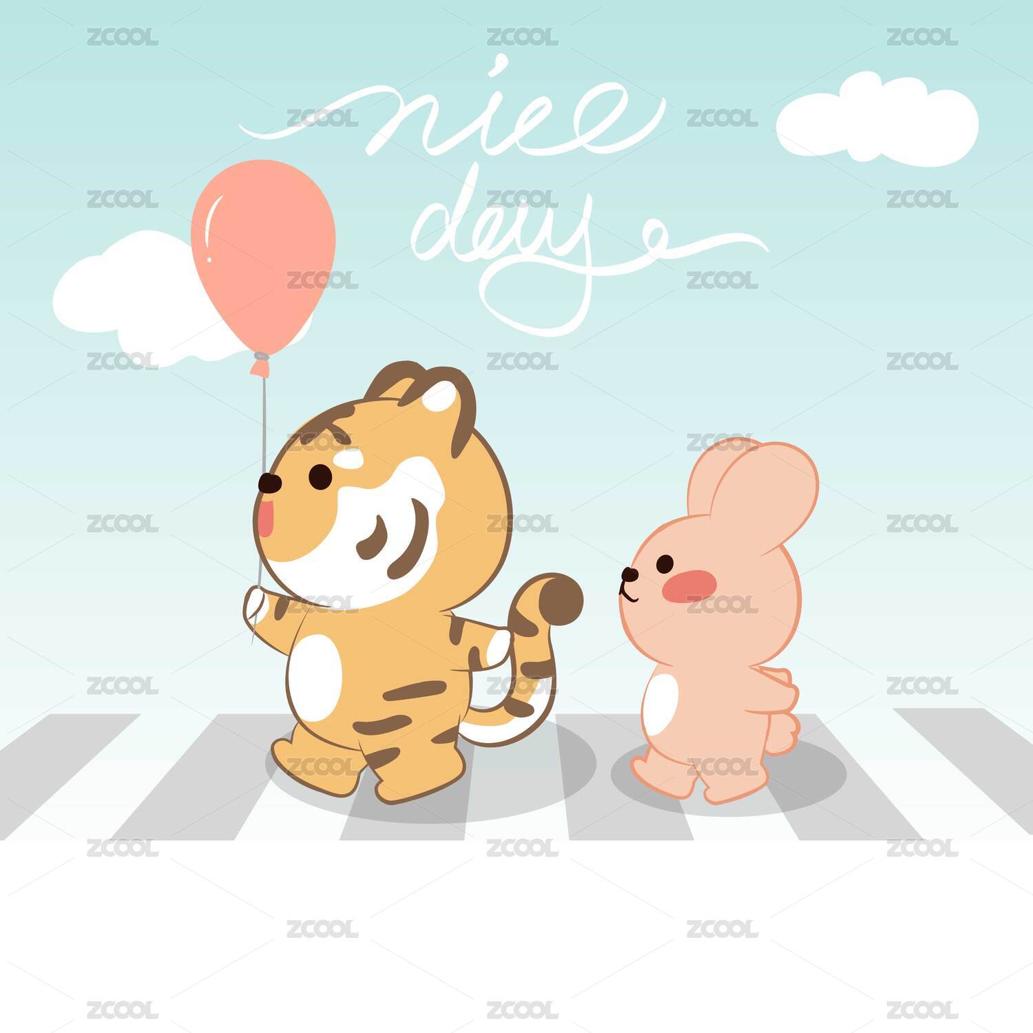 可愛卡通動物老虎兔子過馬路