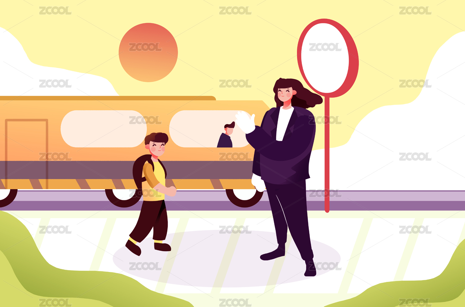 人行橫道過馬路的人物插畫元素