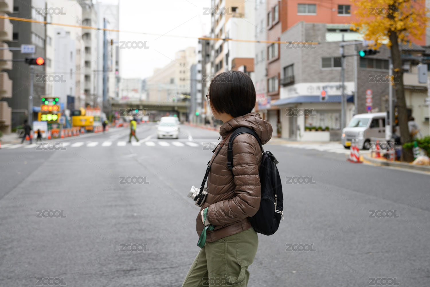 正在日本東京街頭過馬路的中國年輕女生
