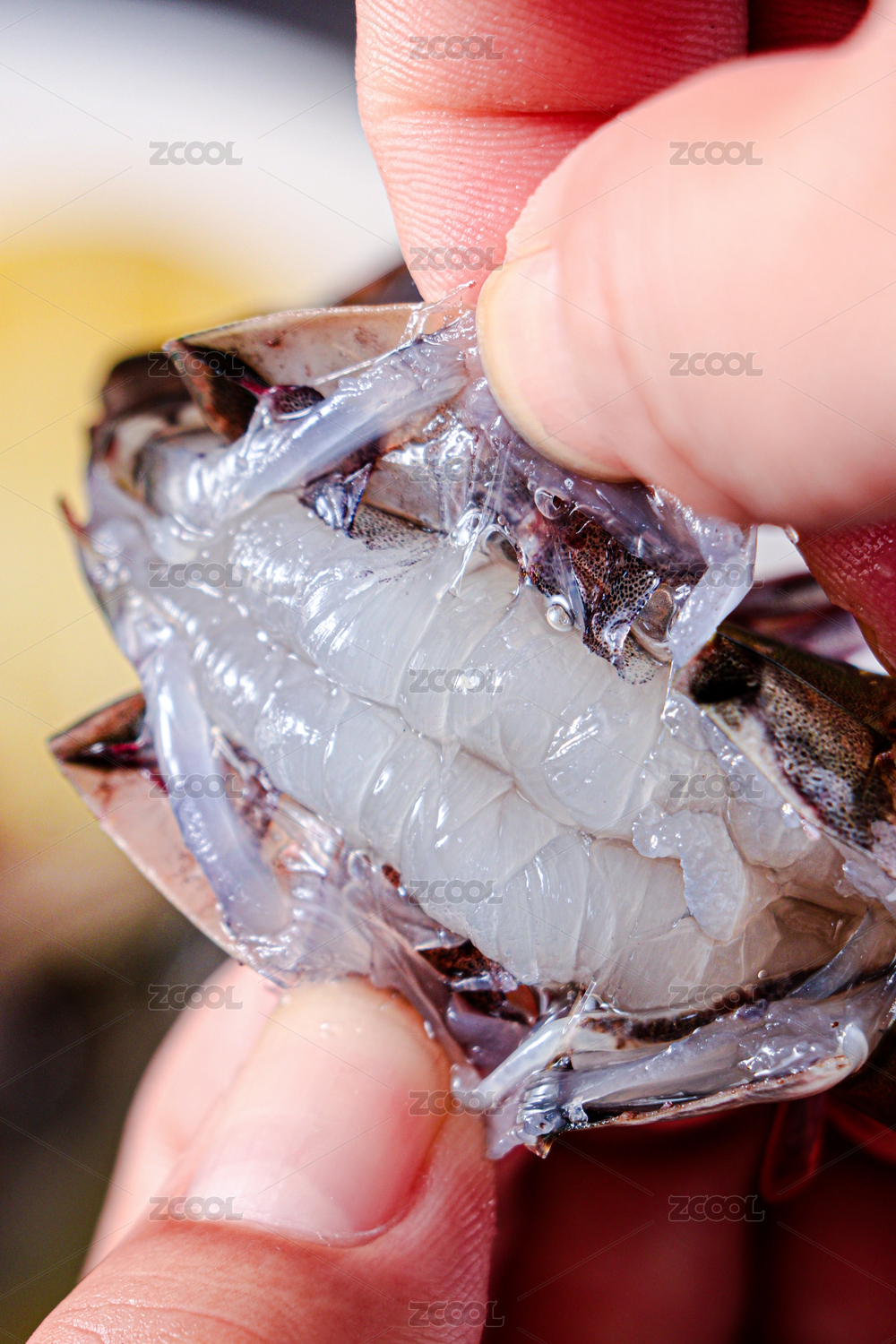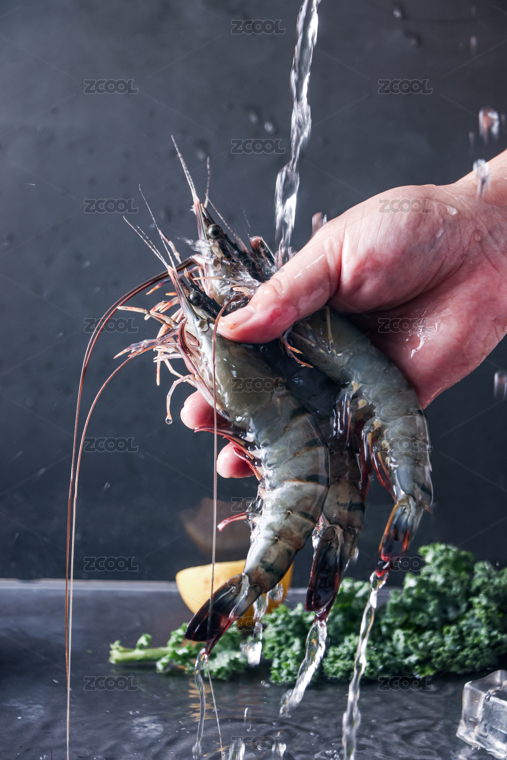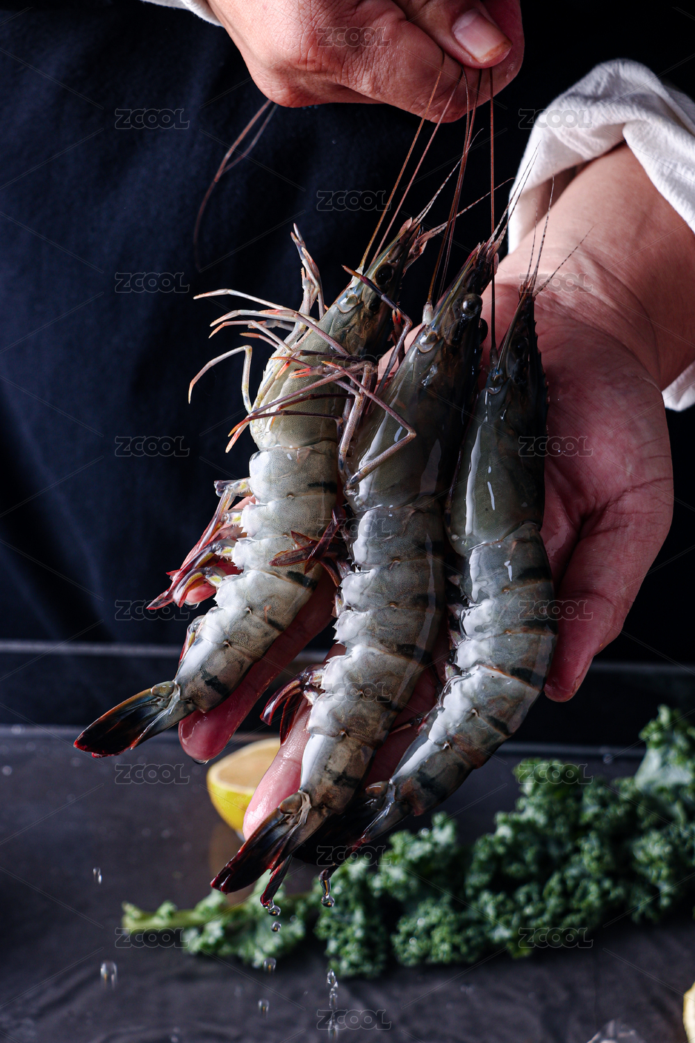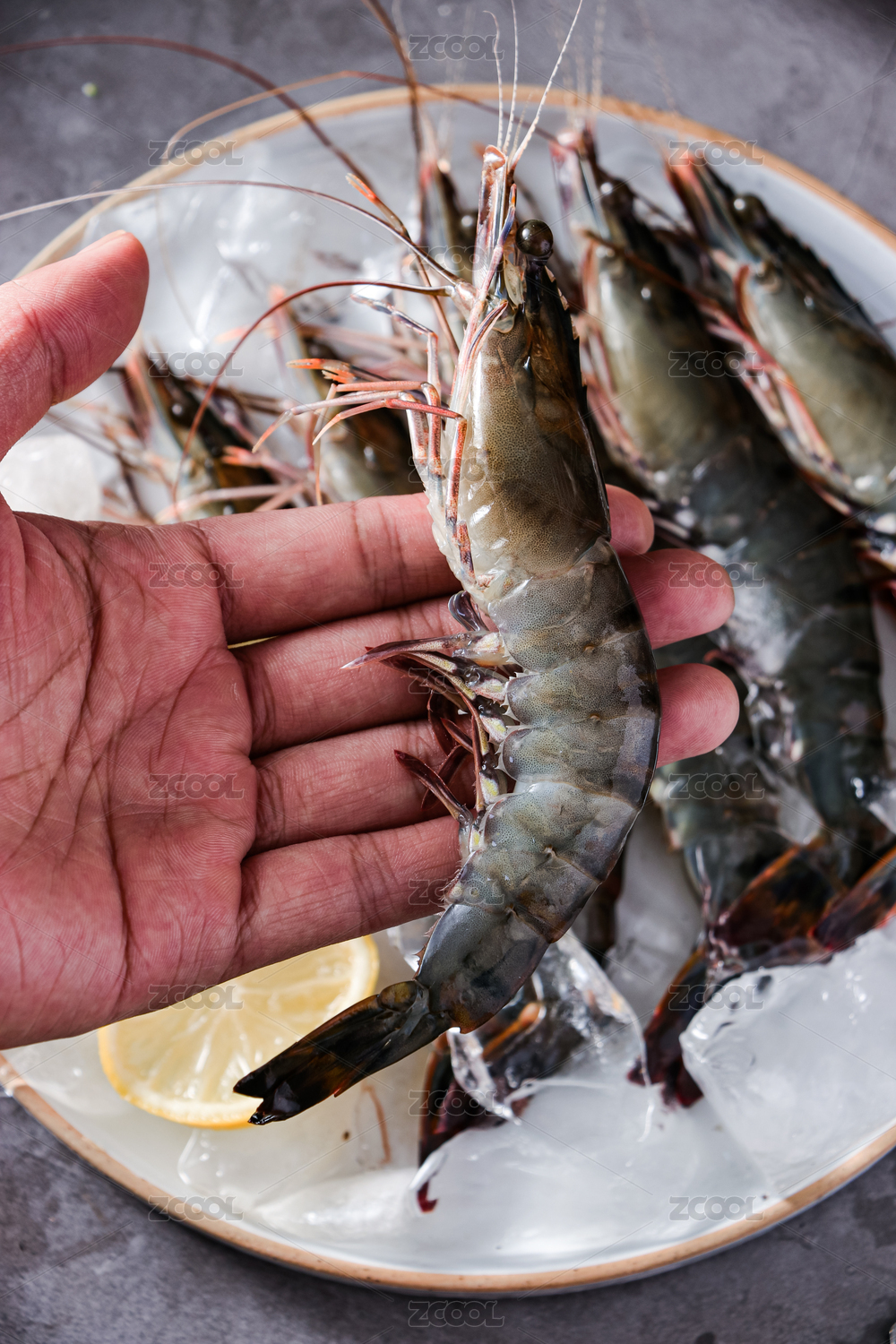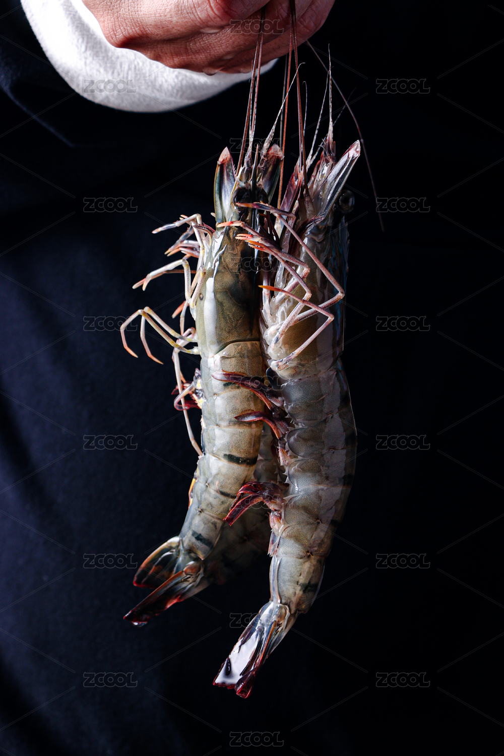手里拿著的黑虎蝦