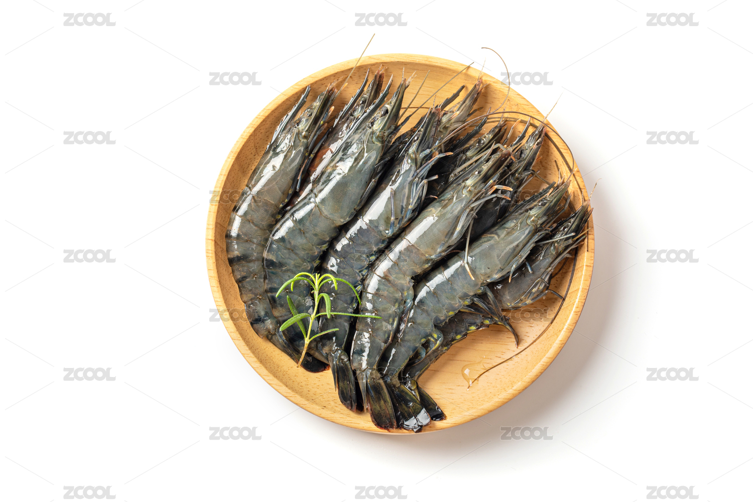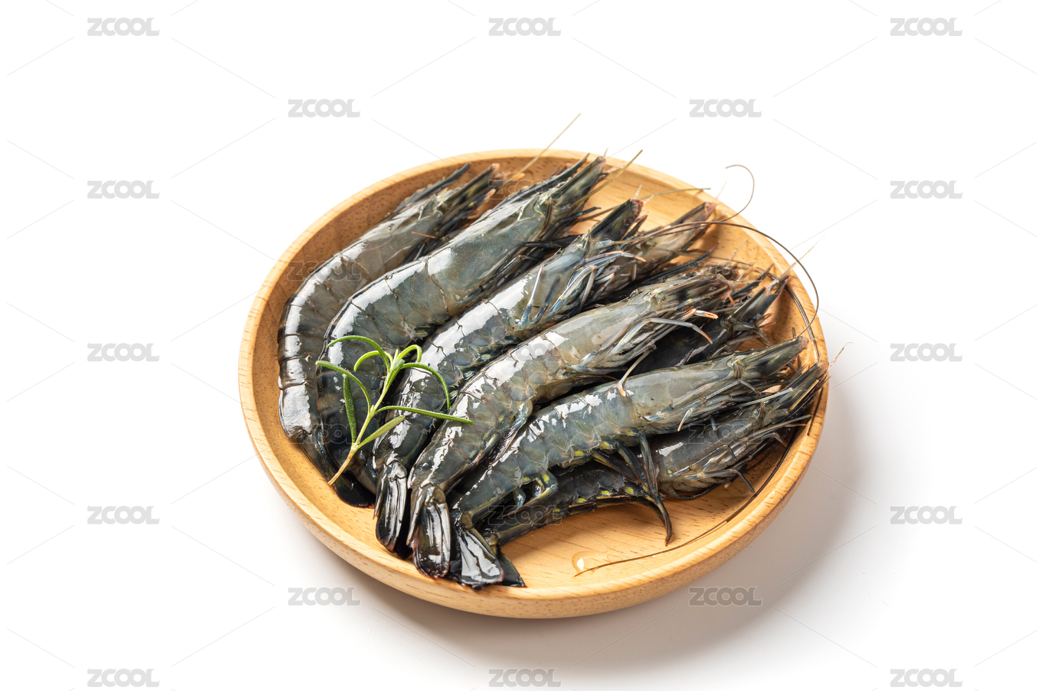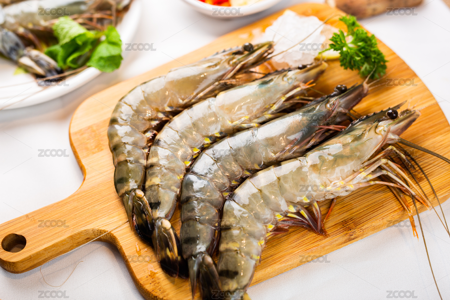木質(zhì)餐板中擺放的黑虎蝦