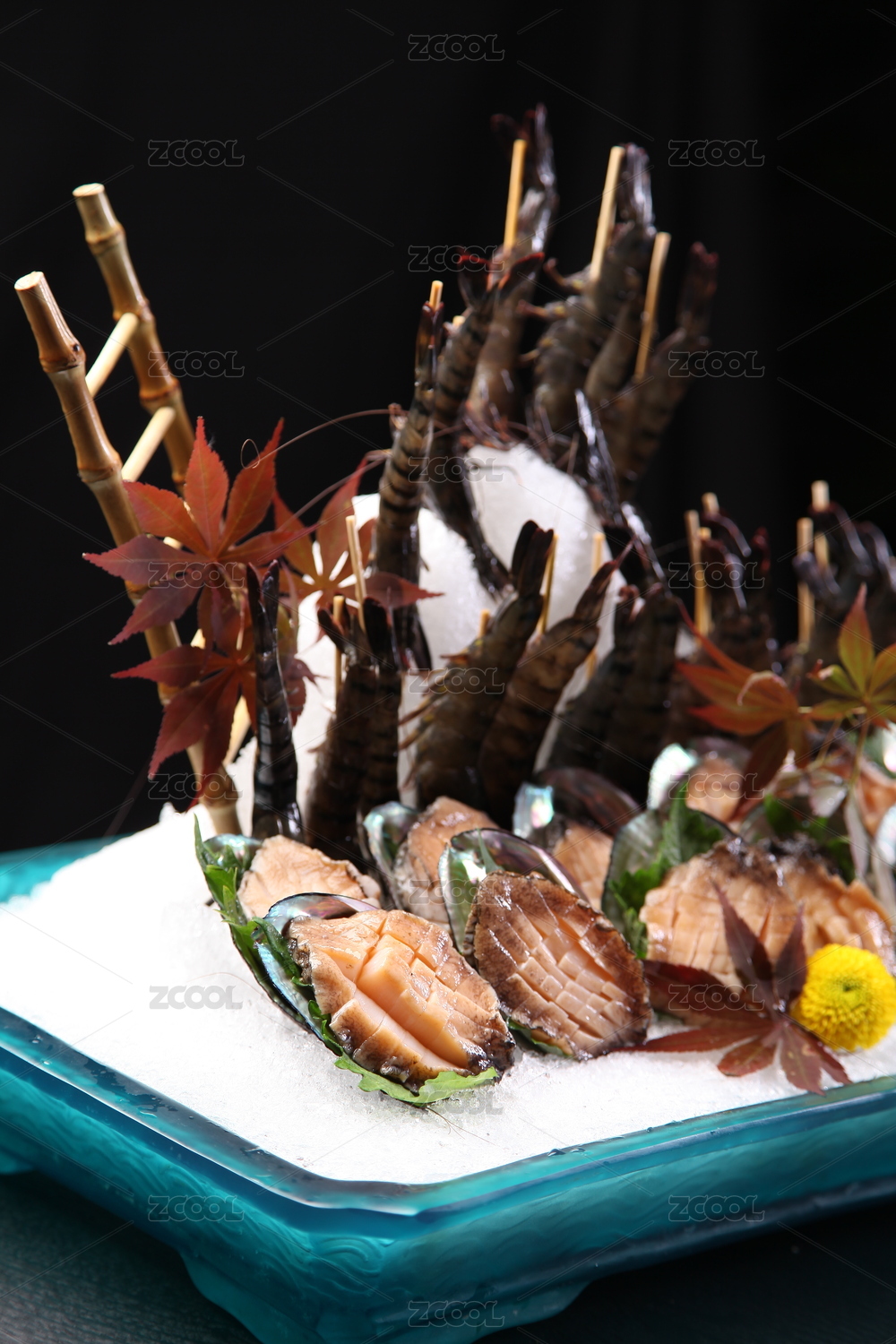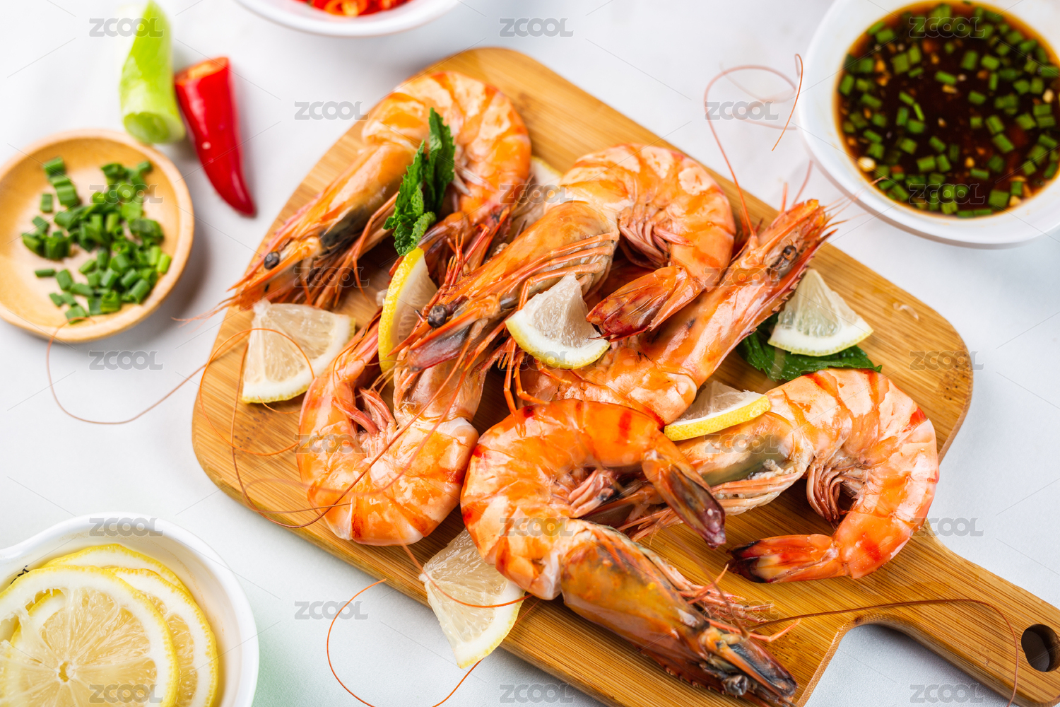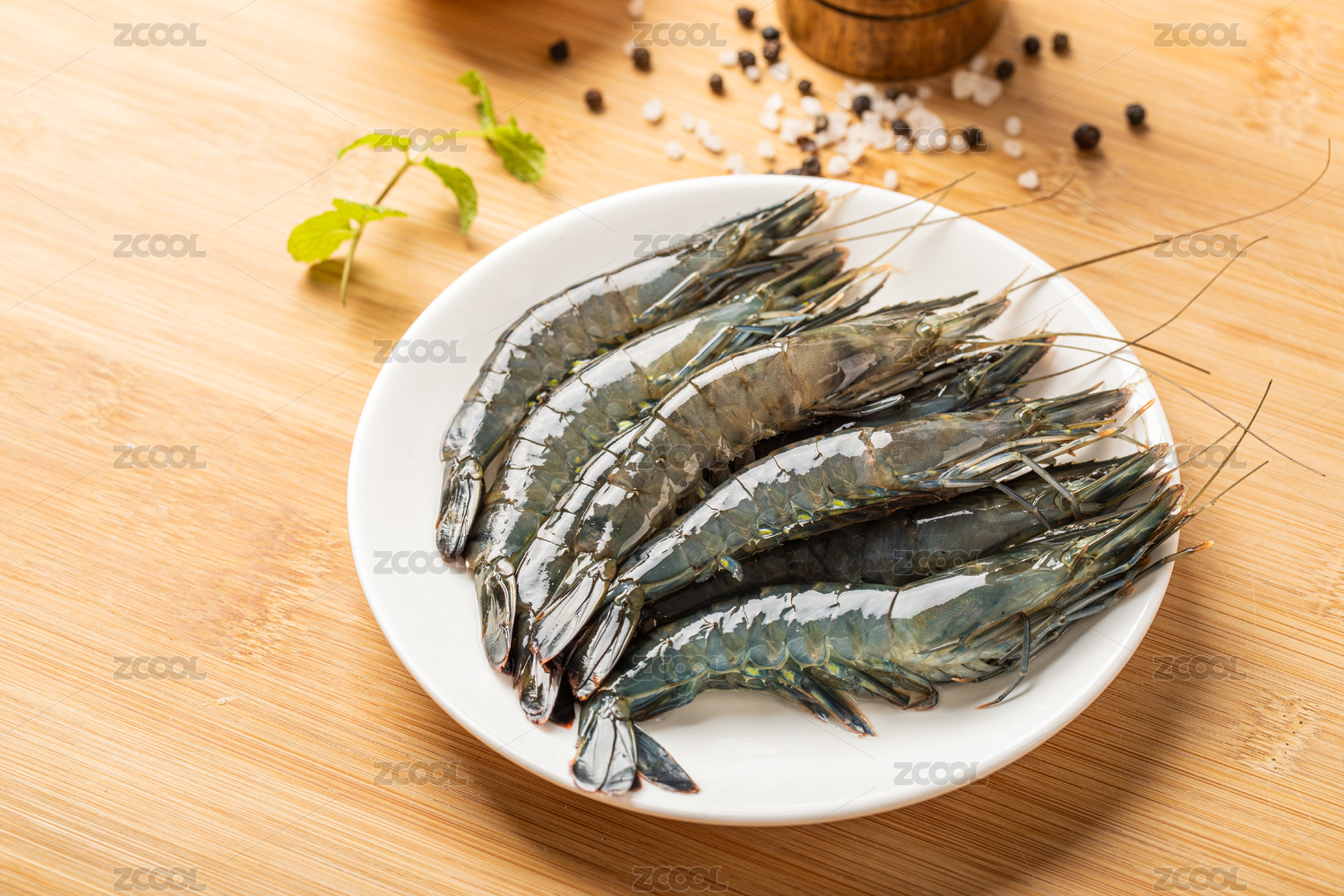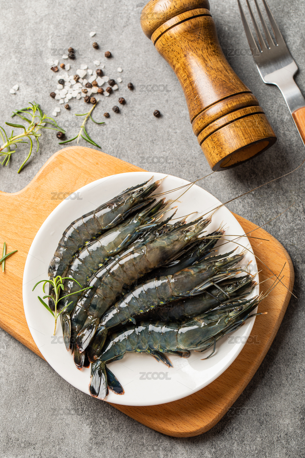 木質(zhì)餐板中擺放的黑虎蝦