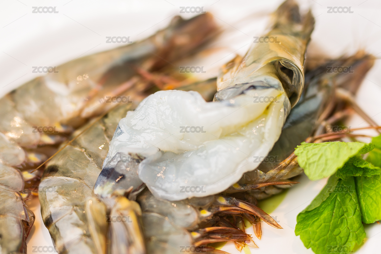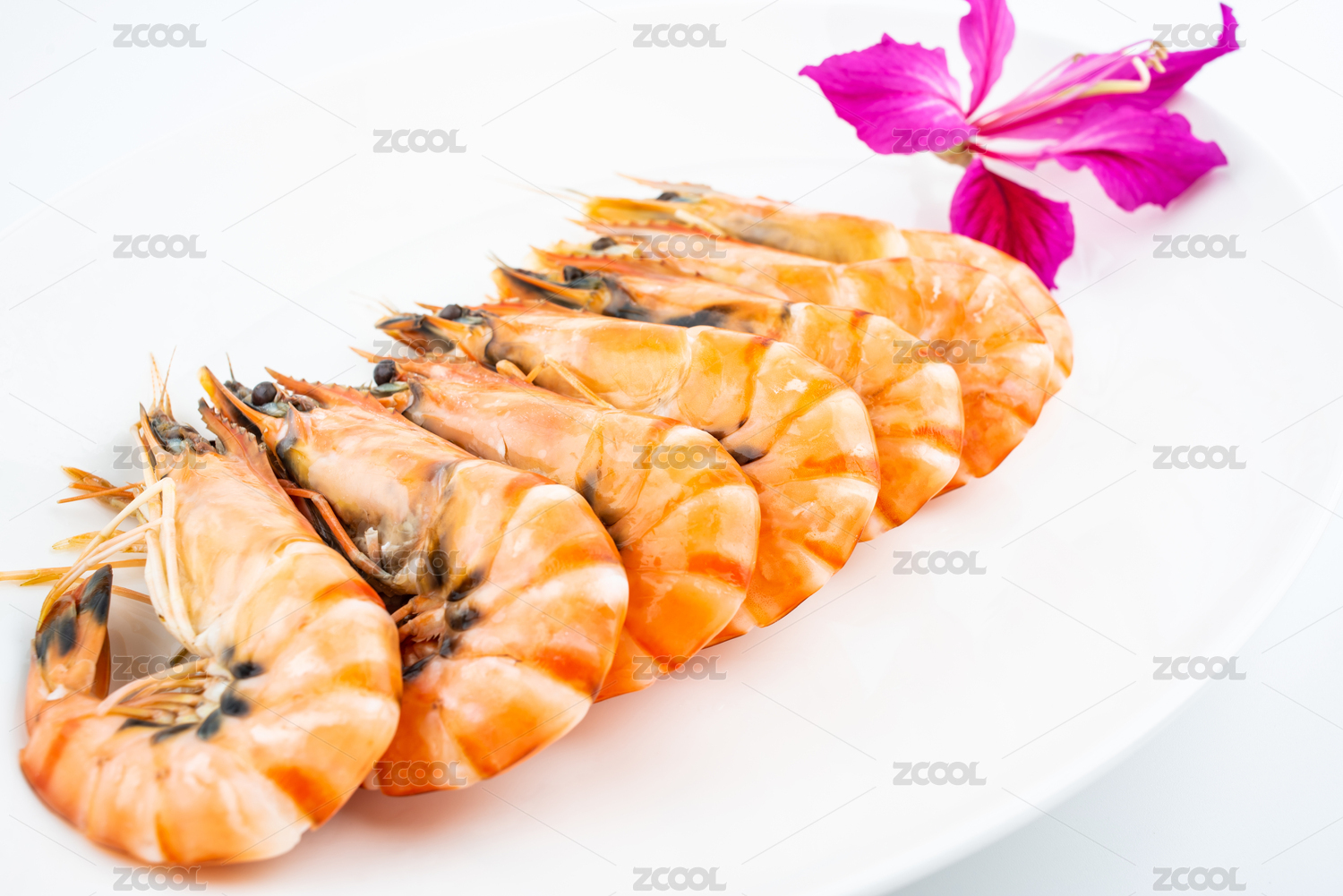 白色瓷盤中擺放的黑虎蝦