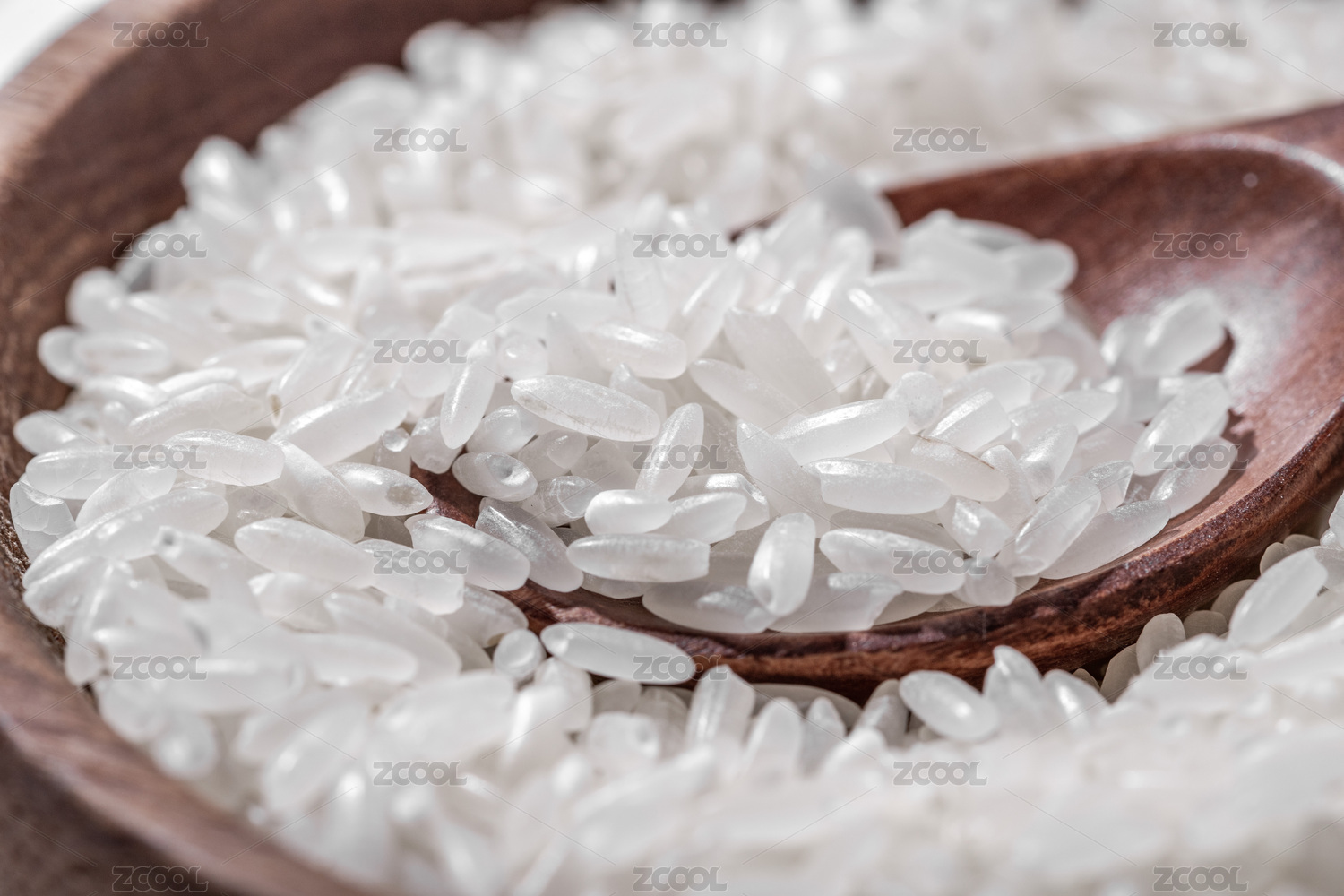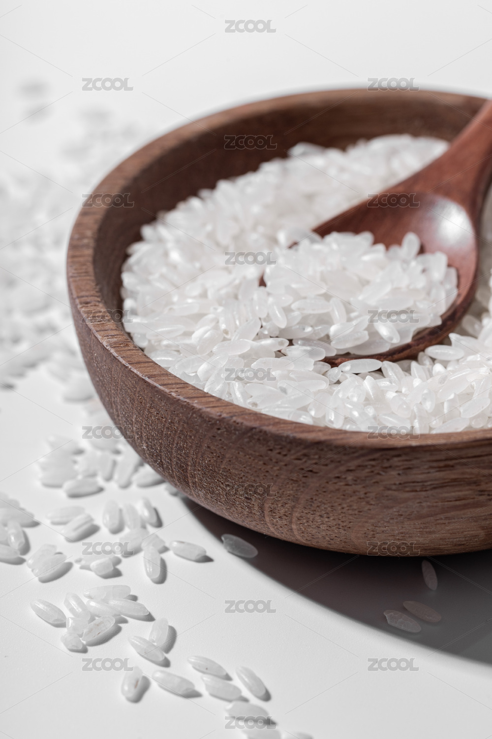 木碗里有一些大米和木勺