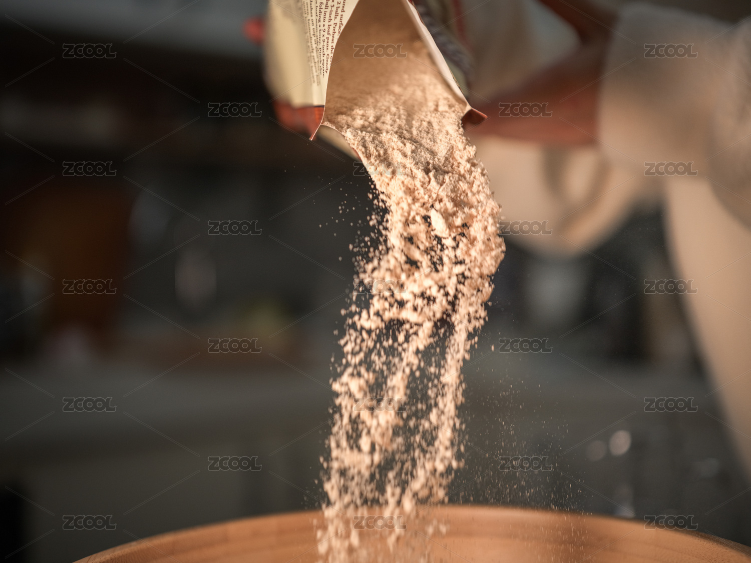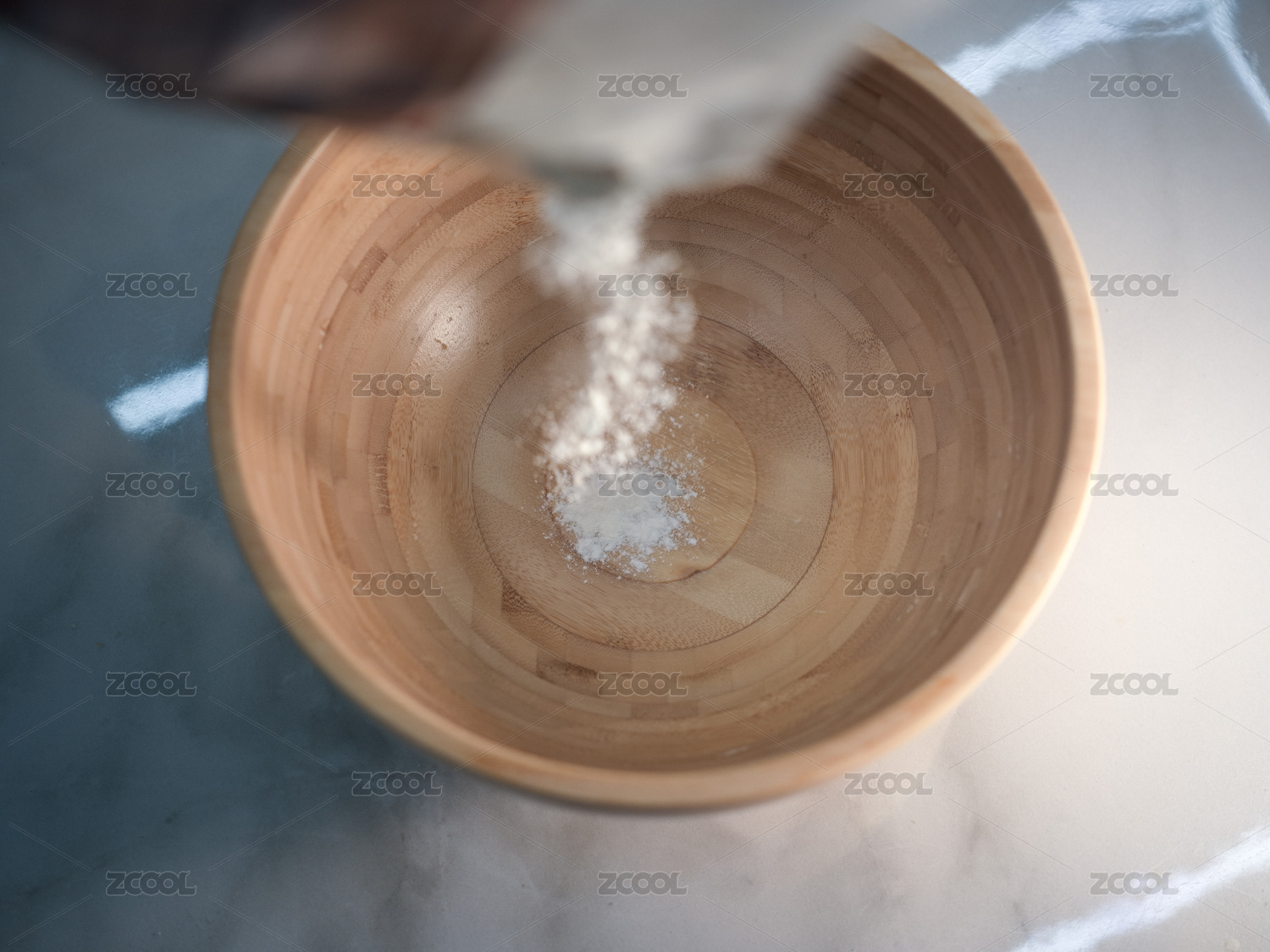 往木碗中倒粉狀物
