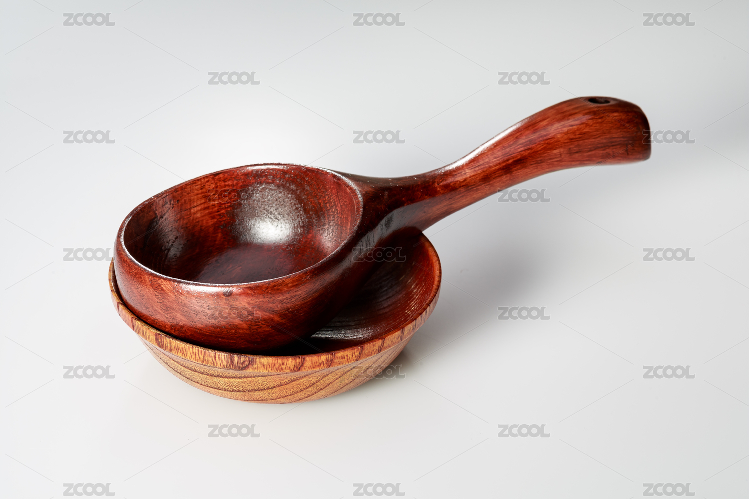 室內(nèi)白色背景上的木碗木勺