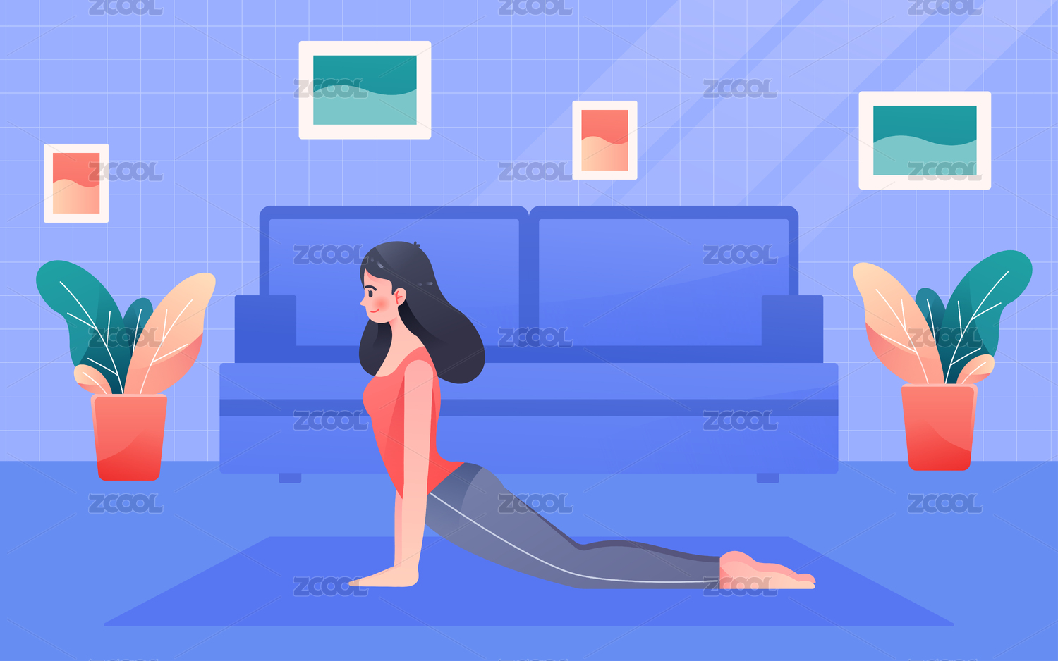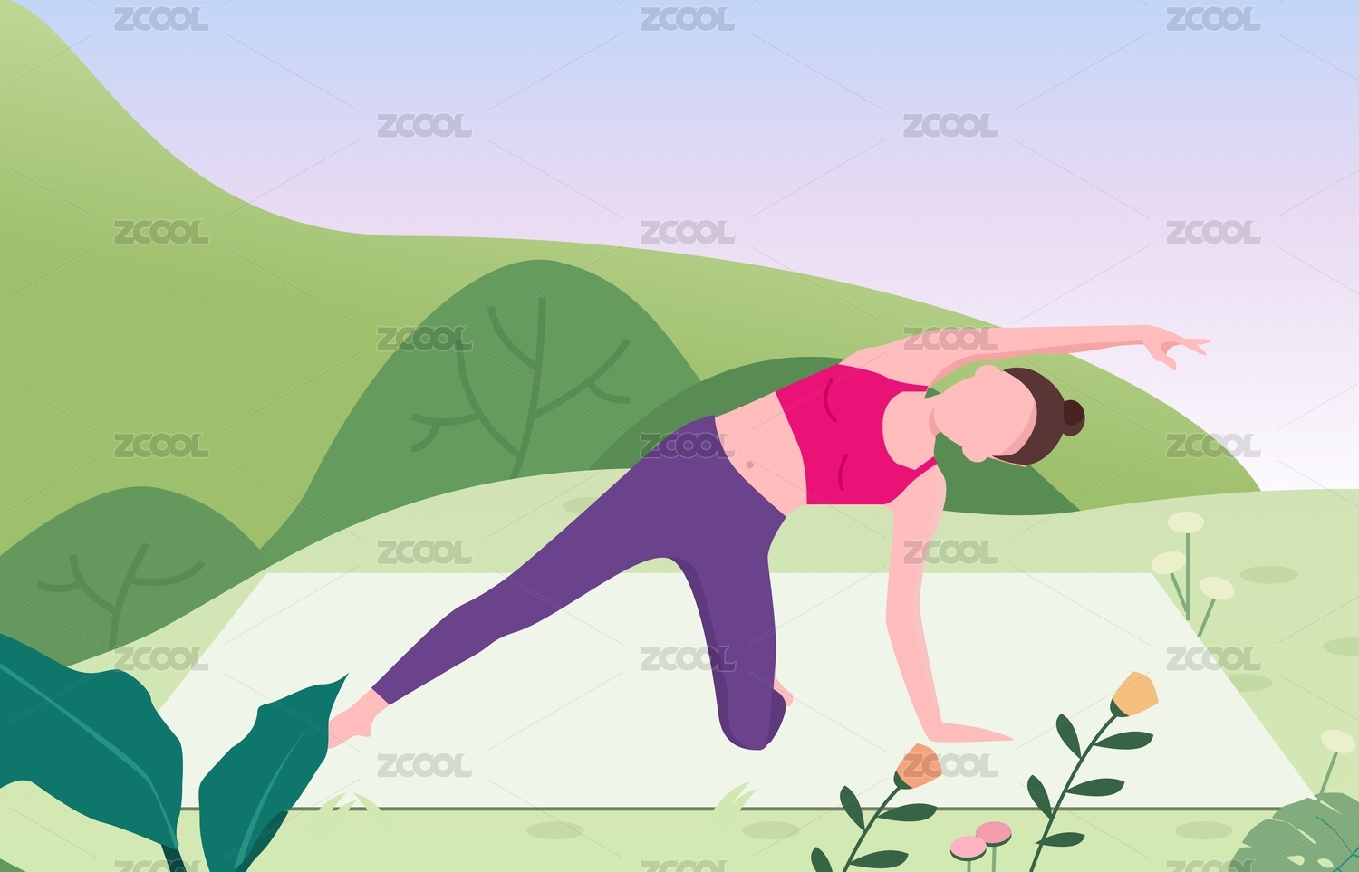 人物運動瑜伽健身減肥瘦身鍛煉身體卡通插畫