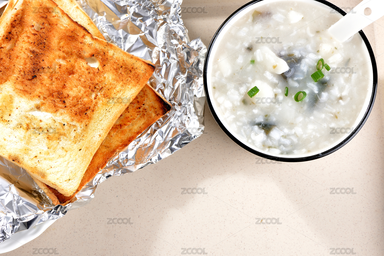 一碗皮蛋瘦肉粥和兩塊烤面包