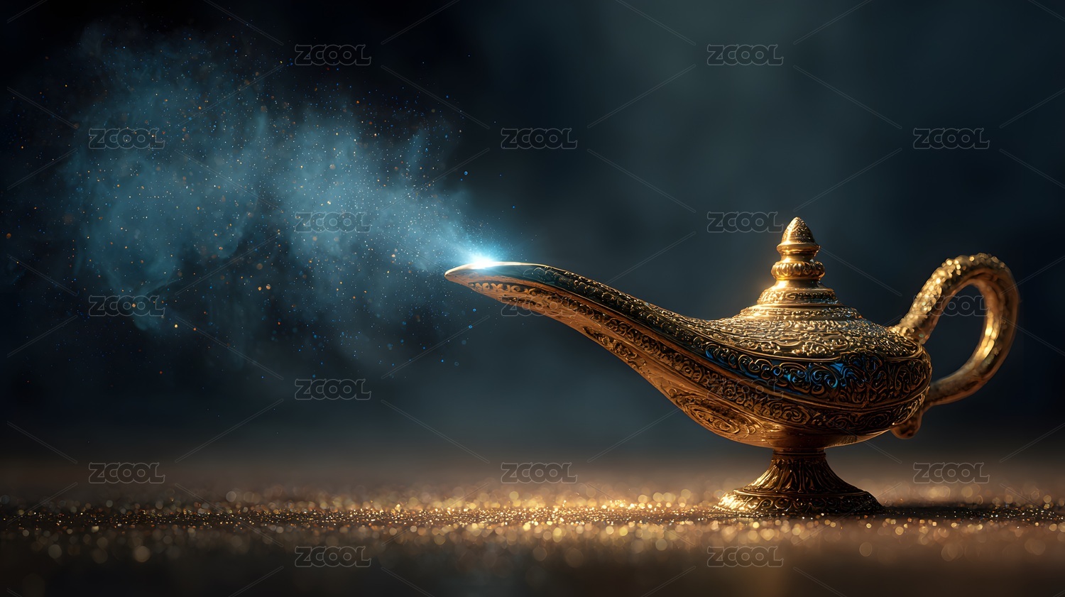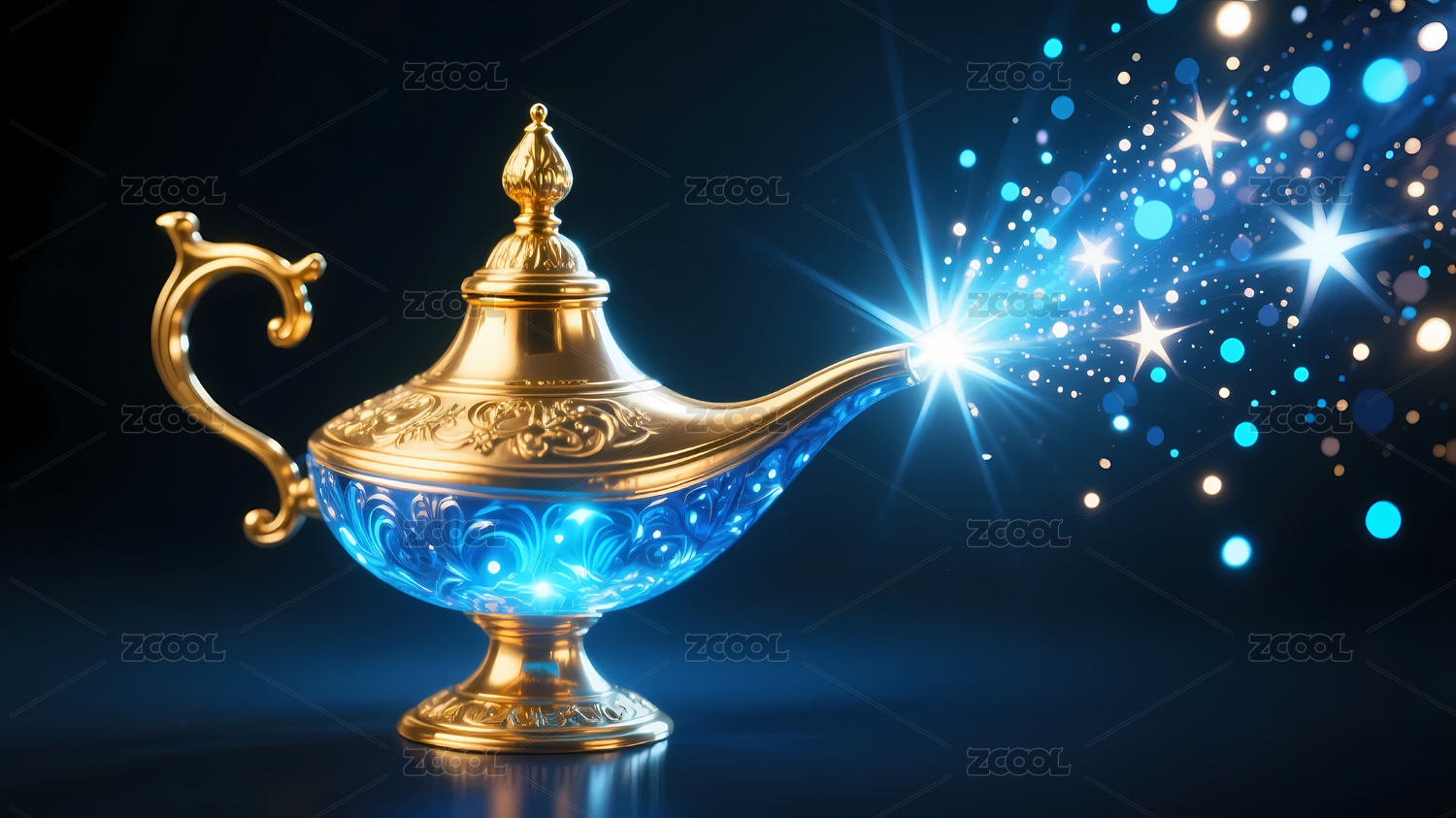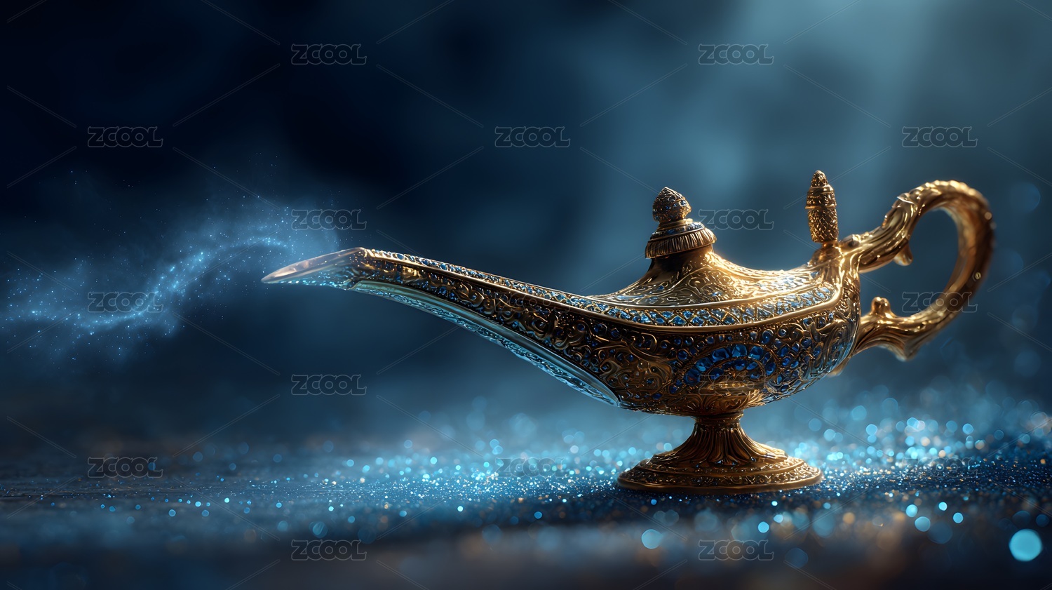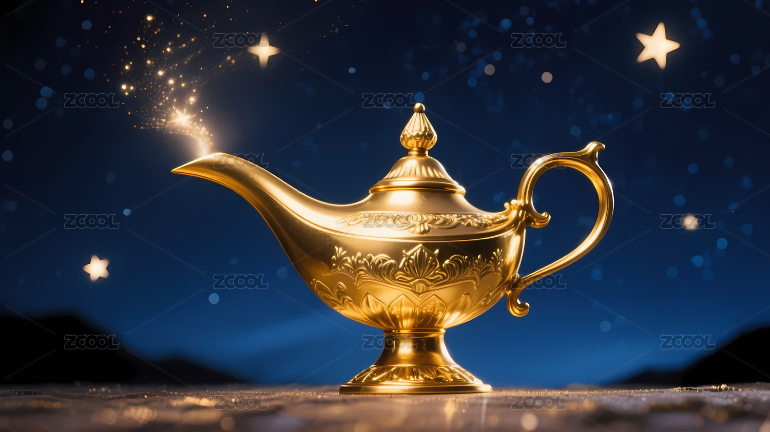 阿拉丁神燈釋放藍(lán)光,奇幻夜景