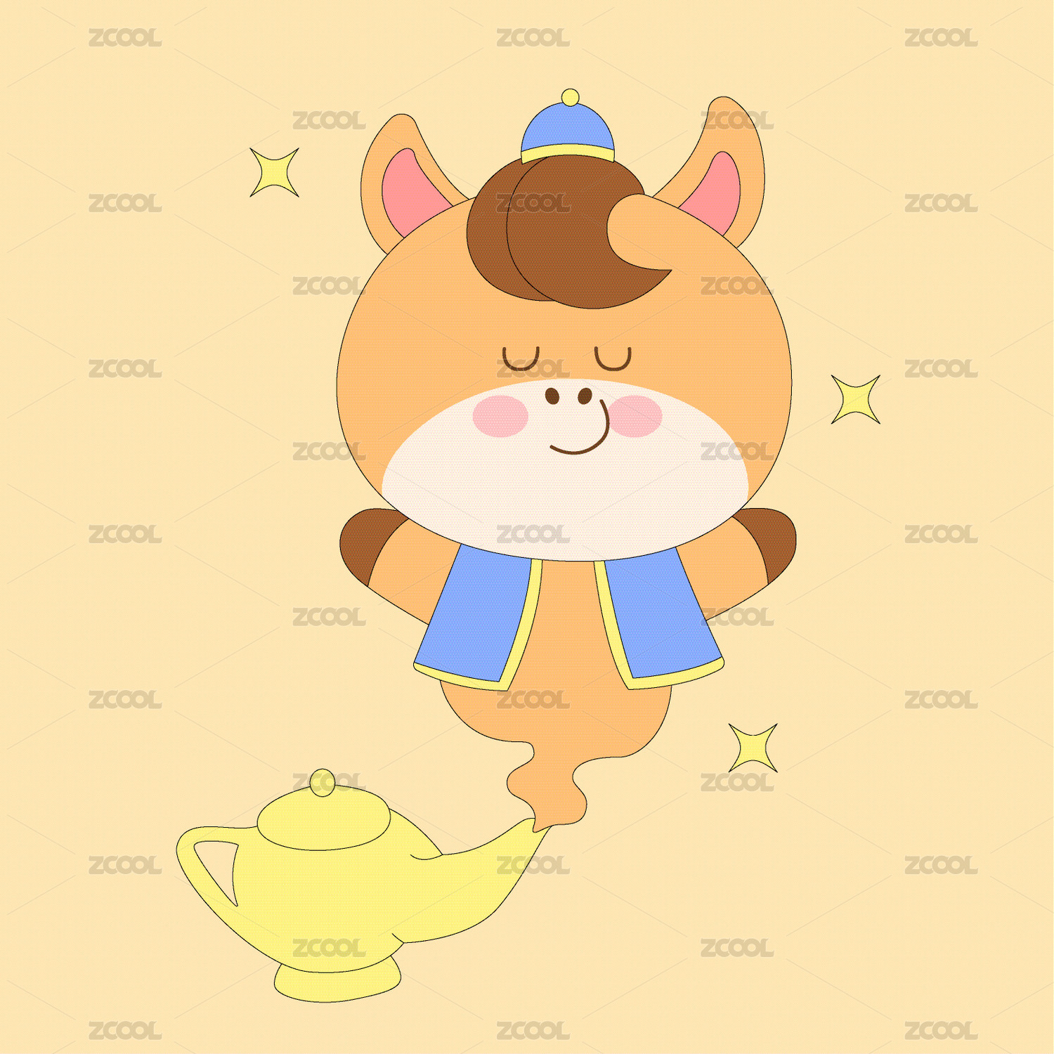 小馬駒走大運(yùn)阿拉丁神燈表情包插畫