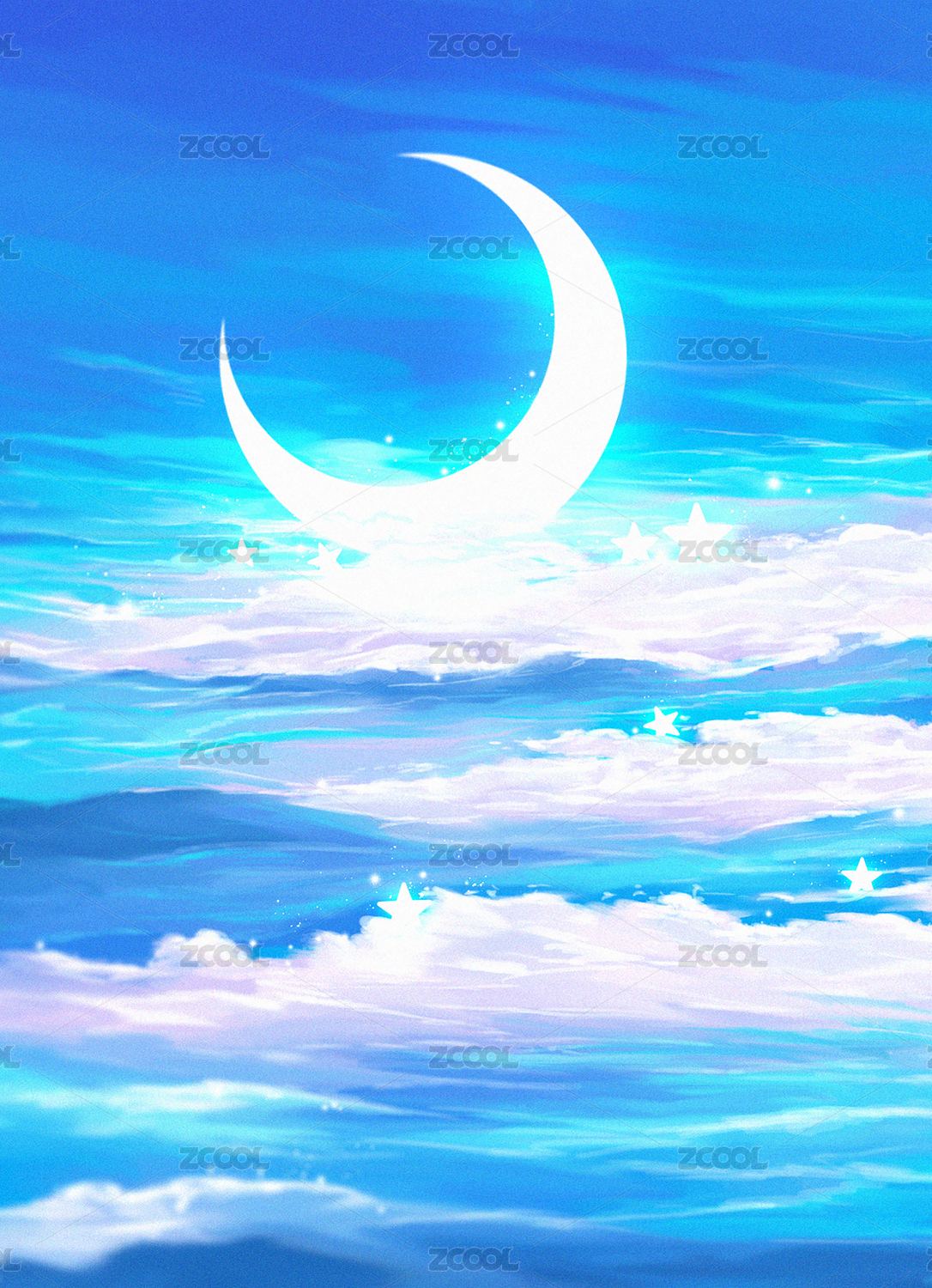 藍(lán)色小清新月亮夢(mèng)幻背景圖