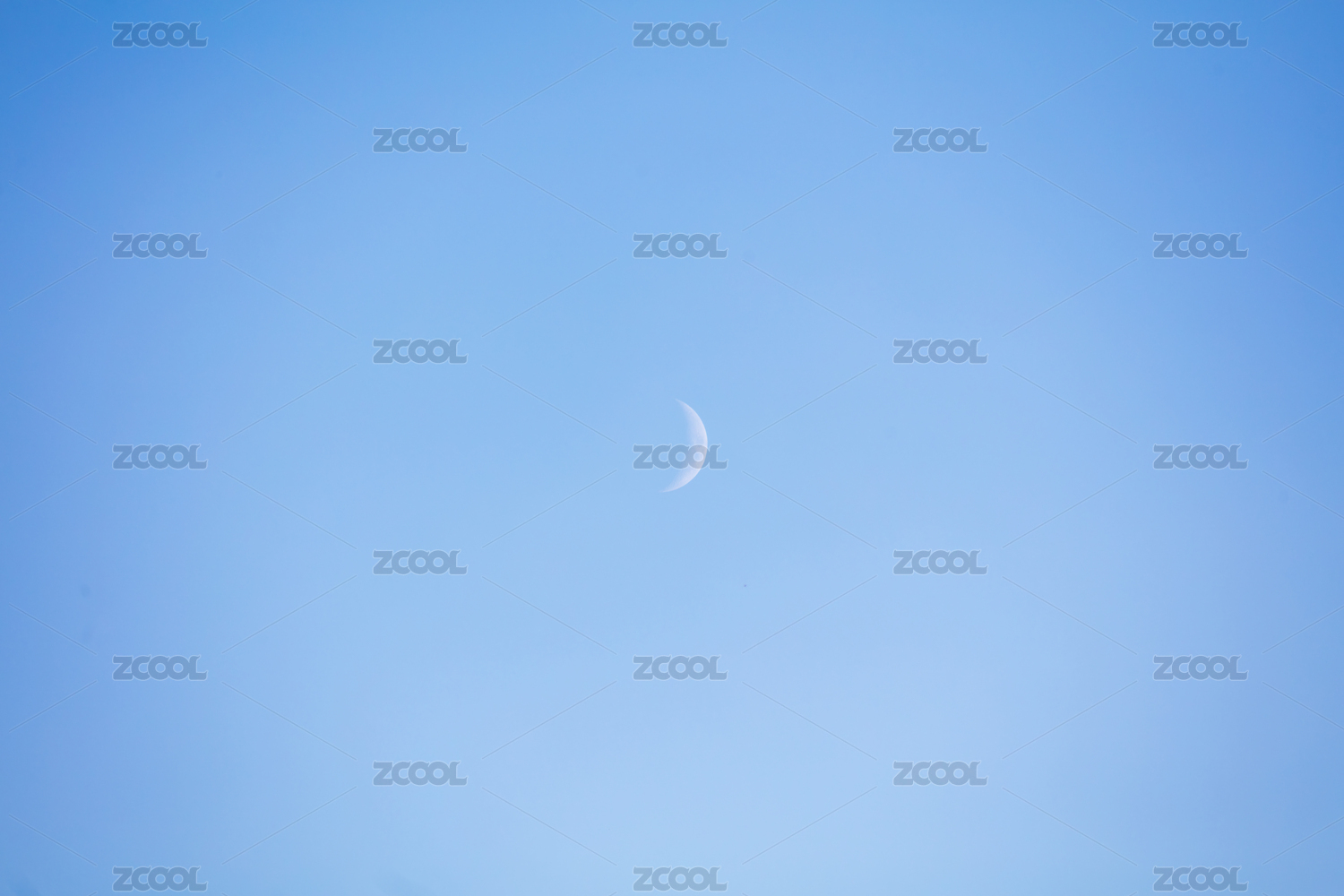 藍(lán)色天空中懸掛著一彎新月